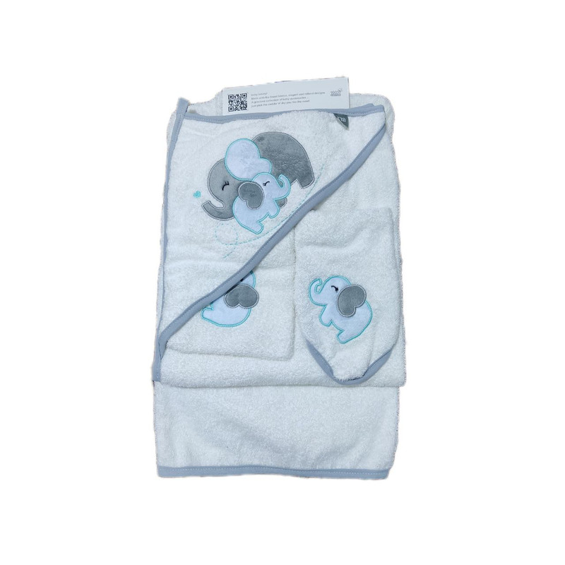 ست حوله 5 تکه mother care، ست حوله 5 تکه نوزادی که شامل حوله کلاهدار، حوله کوچک، لیف ،پاپوش و دستمال می باشد. این ست حوله نوزادی دارای طرح گل دوزی فیل با مزه بوده که موجب جذابیت هر چه بیشتر این ست شده است و این طرح فیل بر روی همه تکه ها خودنمایی می کنند. حوله کلاهداری در این ست وجود دارد که برای بعد از استحمام کاملا مناسب می باشد و با کلاه آن می توان سر و گردن کودک را خشک نمود. جنس این ست حوله نوزادی کاملا نرم و لطیف است و با پوست نوزاد دلبند شما سازگار خواهد بود. یک حوله کوچک، یک شنل زیبا ، یک عدد لیف و یک جفت پاپوش این ست زیبا را تکمیل می کند که به کمک آن می توانید لوازم بهداشت و حمام نوزاد دلبند خود را تکمیل نمایید. این ست یک گزینه ی ضروری برای کامل کردن سیسمونی دلبند شماست و خرید آن به عنوان هدیه برای خانواده ای که تازه صاحب فرزند شده اند نیز می تواند انتخابی هیجان انگیز باشد. این حوله برای رده سنی نوزادی تا دو سالگی مناسب است .