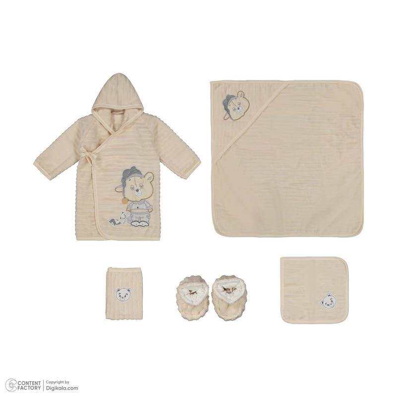 | سایر توضیحات | 1 عدد حوله تن پوش به ابعاد 75x75 سانتی متر - 1 عدد حوله دورپیچ به 71x71 سانتی متر - 1 عدد حوله دست و صورت به ابعاد 25x25 سانتی متر - 1 عدد لیف حمام به ابعاد 20x13.5 سانتی متر - 2 عدد کفش حمام به ابعاد 10x7 سانتی متر |