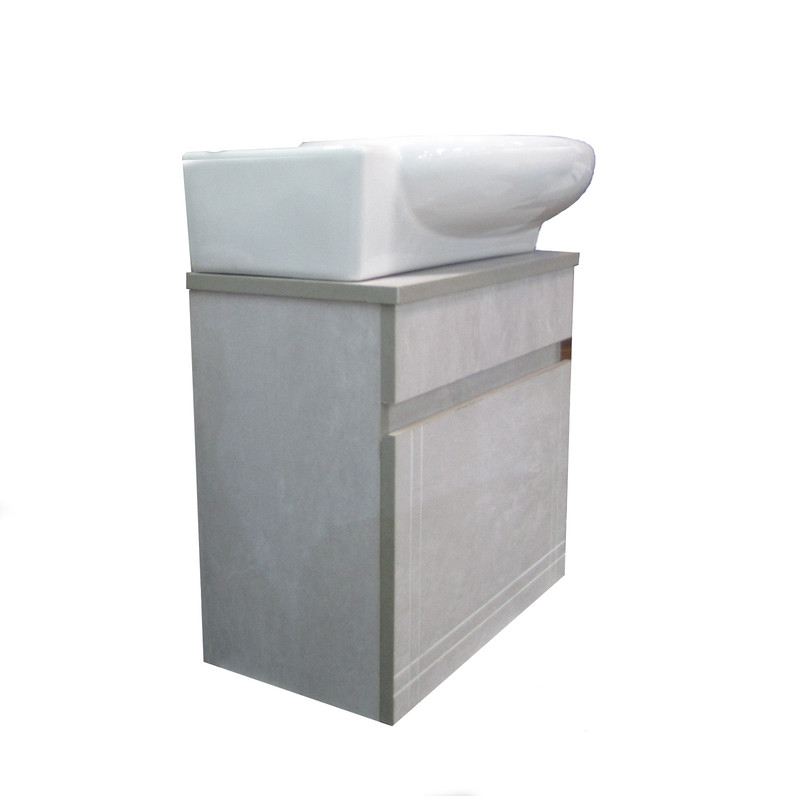 روشویی کابینتی مدل AMTD245 از پی وی سی ضد آب ساخته شده و دارای روکش زیبای طوسی رنگ می باشد که زیبایی آن را دو چندان کرده است. بر روی این روشویی کابینتی از سنگ چینی بهداشتی آمون محصول شرکت سینا چینی استفاده شده و این روشویی کابینتی از دیوار دارای عرض 32 سانتی متری، و مناسب فضای های کوچک می باشد.