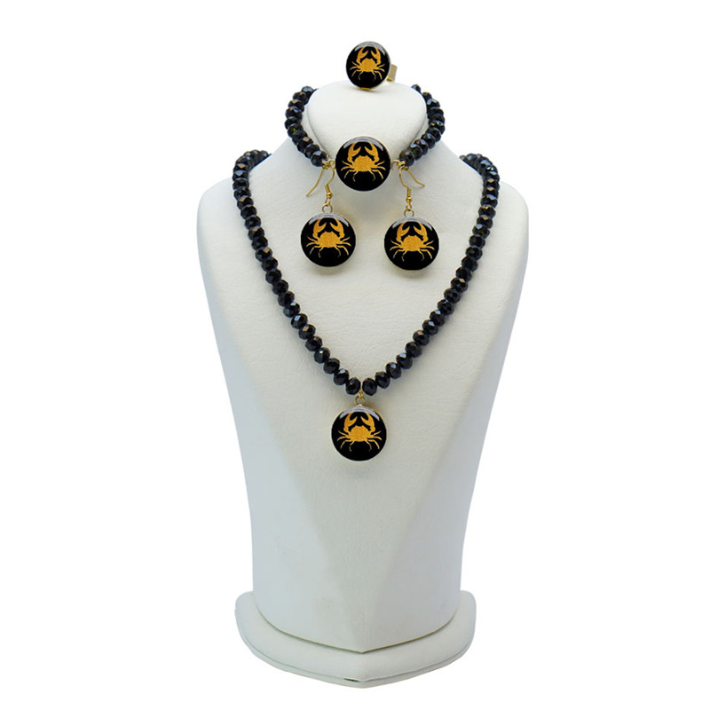 این ست کامل جواهرات انیکس با نماد ماه تیر، با طراحی خاص و جذاب خود، هدیه‌ای به یادماندنی برای متولدین این ماه است. این ست شامل گردنبند، دستبند، گوشواره و انگشتر است که همگی با سنگ‌های انیکس مشکی و درخشان تزئین شده‌اند. روکش طلای به کار رفته، جلوه‌ای گرم و صمیمی به این ست بخشیده و درخشش سنگ‌های انیکس را دوچندان کرده است. لایه رزینی محافظ روی سنگ‌ها، علاوه بر افزایش براقیت، از آن‌ها در برابر آسیب محافظت می‌کند و دوام آن‌ها را بیشتر می‌کند. روکش طلایی با نقش برجسته نماد ماه تیر، که تصویر یک خرچنگ است، نمادی از حمایت، مهربانی و احساسات عمیق متولدین این ماه است. این ست با طراحی شیک و مدرن، برای استفاده در مناسبت‌های مختلف مناسب است و به شما کمک می‌کند تا با اعتماد به نفس و درخشش، توجه‌ها را به خود جلب کنید. این ست، نه تنها یک مجموعه جواهرات زیبا و با ارزش است، بلکه بیانگر شخصیت دلسوز و مهربان شماست. با انتخاب این ست، حس خاص بودن را تجربه کنید و از زیبایی آن لذت ببرید.