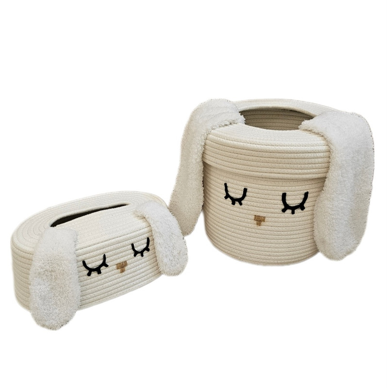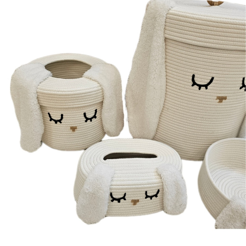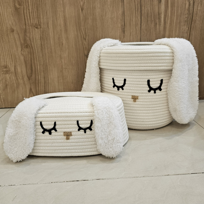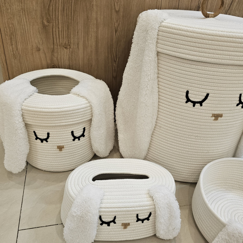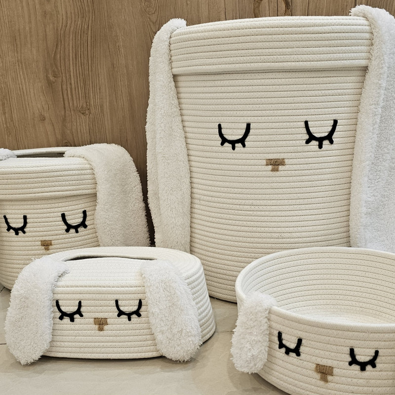 ست سبد اسباب بازی و وسایل کودک از ریسمان قیطان ساخته شده است، علاوه بر نرم بودن ایستایی بالایی دارد. ظاهر مدرن و کیفیت بالای محصول آن را متمایز کرده است. این محصول کاملا طبیعی و دوستدار محیط زیست است و هیچ قسمت آسیب زایی برای کودک شما ندارد. این ست شامل یک سطل زباله در دار و کاور دستمال میباشد و یک سبد بزرگ که مناسب اسباب بازی یا لباس چرک است و دارای درب میباشد. و سبد کوچک را میتوان بعنوان نظم دهنده و جایی برای قرار دادن پوشک یا اقلام بهداشتی استفاده کرد. وسط درب سطل زباله باز است و برای انداختن زباله در آن نیاز به برداشتن در نیست و داشتن این درب باعث میشود بتوانید در سطل کیسه زباله قرار دهید بدون اینکه دیده شود و از زیبایی سطل بکاهد.