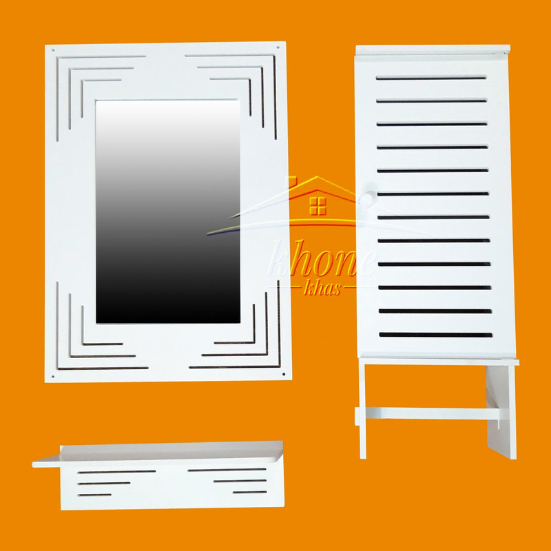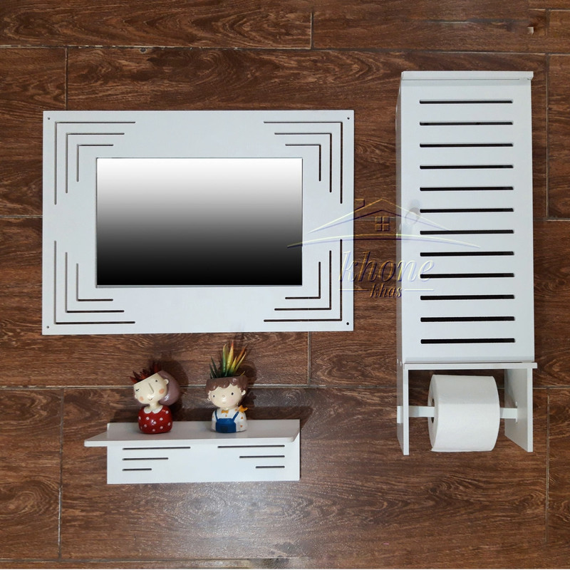 ست کامل 3 تکه باکس، آینه و شلف پی وی سی خونه خاص که در تصویر مشاهده می کنید در مدل خطی با طراحی خونه خاص تولید و به بازار عرضه گردیده است. بدنه ی PVC این محصول دارای خاصیت ضد آب و استحکام بسیار بالایی می باشد و از این رو شما می توانید بدون نگرانی از کاهش کیفیت محصول از آن در محیط های مرطوب، سرویس بهداشتی، حمام همچنین در آرایشگاه ها نیز استفاده نمائید. این ست متشکل از آینه، شلف دیواری و باکس درب دار است که به شما این امکان را می دهد تا بتوانید از آن علاوه بر کاربرد متداول در محیط های لوکس جهت تزئین دکوراسیون نیز استفاده نمائید. در قسمت پایینی باکس جای دستمال رولی / حوله تعبیه شده است که نیاز شما را کاملا مرتفع می کند. همچنین شلف دیواری (کنسول) همراه با آیینه به شما در نگهداری انواع لوازم آرایشی، لوازم دکوری، لوازم شخصی بهداشتی و … کمک می کند. این آینه در رنگ های قهوه ای، نسکافه ای و طلایی هم امکان تولید دارد که جنس آن mdf بوده، قابل شستشو نمی باشد ولی با توجه به رنگ دکور شما می تواند آینه ای زیبا و در خور توجه باشد. این محصول بصورت تک جعبه در کارتن خونه خاص تولید و ارسال می شود.