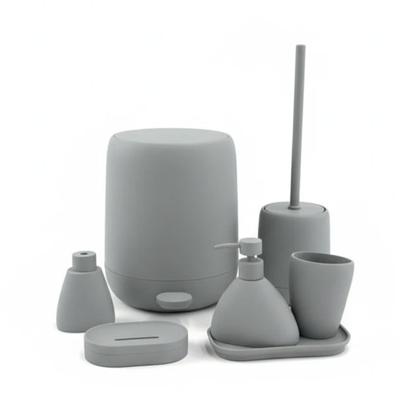 ست سرویسبهداشتی دلفین از ترکیب رزین مقاوم و پلاستیک فشرده ABS ساخته شده تا جلوهای مینیمال، مدرن و درعینحال بادوام به فضای حمام شما ببخشد. این مجموعه شامل سطل زباله پدالی، جا مایع دستشویی، جا مسواکی، برس توالت، جا صابونی و زیره ست است که با طراحی یکدست و رنگ خالص طوسی، هماهنگی چشمنوازی در سرویسبهداشتی ایجاد میکند. سطوح مات با بافت نرم و مقاوم در برابر رطوبت، حس تمیزی و آرامش را القا کرده و در برابر تغییر رنگ یا خراش کاملاً پایدار است. طراحی ارگونومیک هر قطعه استفاده روزمره را راحتتر کرده و پاکسازی سطح محصولات بهسادگی انجام میشود. ست رزین و ABS دلفین نهتنها جلوهای ظریف و لوکس ایجاد میکند، بلکه انتخابی هوشمندانه برای کسانی است که دوام، زیبایی و هماهنگی در دکور سرویسبهداشتی را همزمان میخواهند.