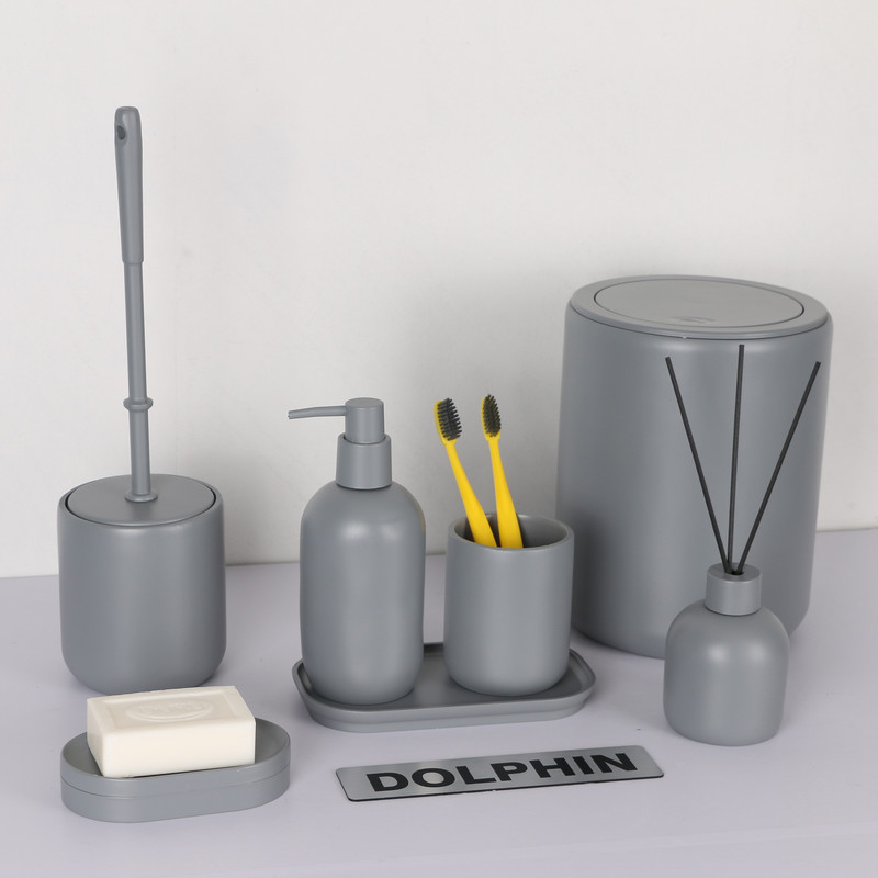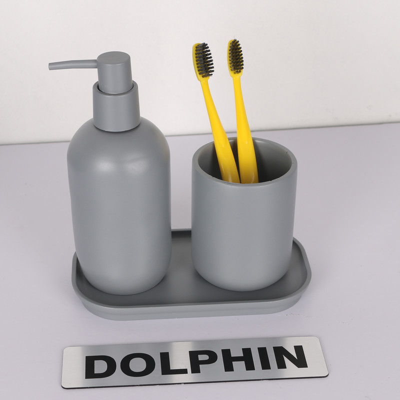 ست سرویس بهداشتی دکوراتیو دلفین از پلی رزین درجه یک ساخته شده است. ست دلفین تشکیل شده از، جای صابون، جای مسواک، سطل، توالتشور، جای مایع، و ظرف خشبوکننده به همراه سینی میباشد. از مزایای ست رومیزی دلفین ضد زنگ و ضد باکتری بودن است. ست دلفین با طراحی مینیمال مناسب برای هر دکوری میباشد. این محصول مناسب برای هدیه، جهیزیه و ایجاد یک دکور زیبا وایده آل میباشد.
