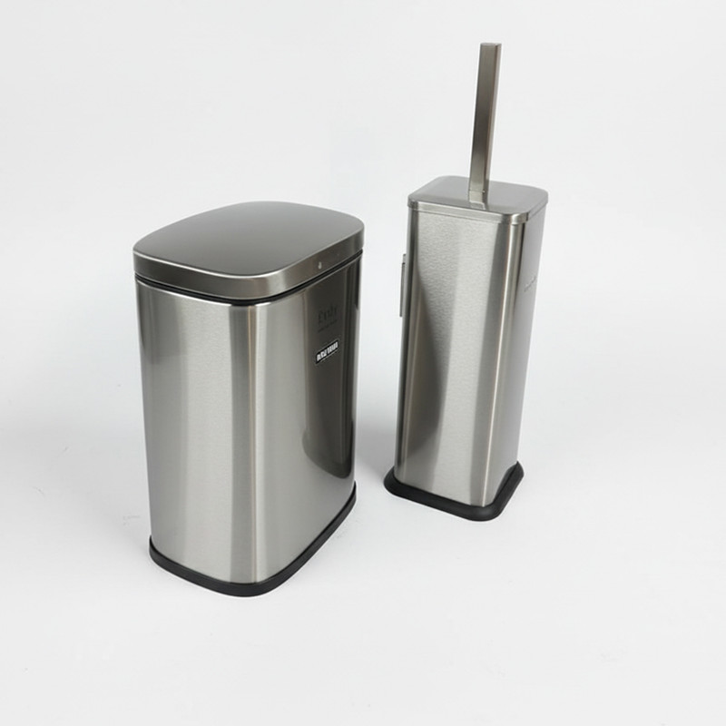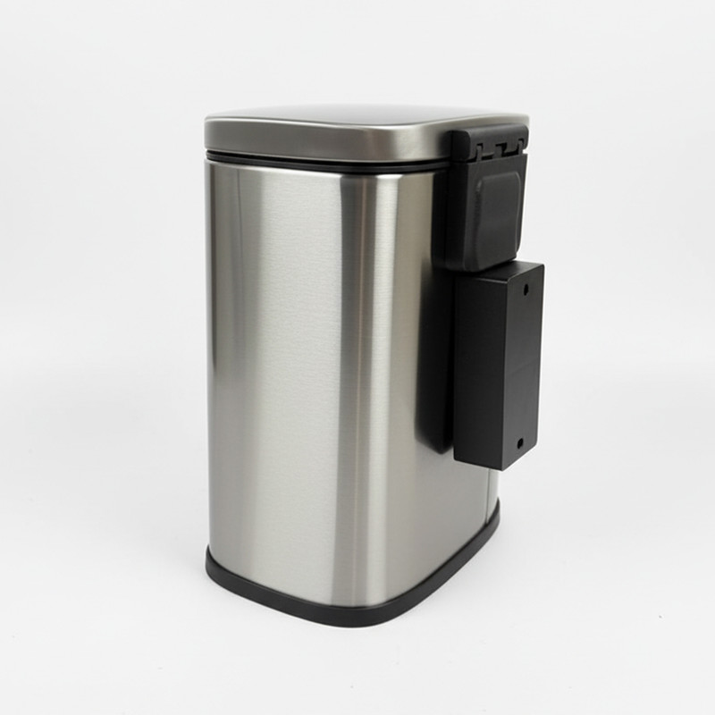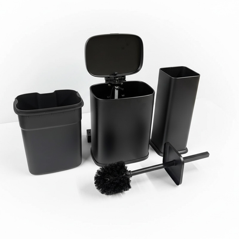 سطل زباله این مجموعه با ارتفاع ۲۵ سانتیمتر، عرض ۱۹ سانتیمتر و عمق ۱۵ سانتیمتر طراحی شده و به دیوار نصب میشود تا فضای کف آزاد بماند و نظافت محیط آسانتر انجام گیرد. درب نرم بازشو باعث عملکرد بیصدا و روان میشود و ظاهر براق آن هماهنگی چشمگیری با اجزای لوکس سرویس بهداشتی دارد.