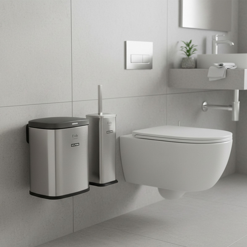 سطح صیقلی استیل و رنگ نقرهای براق، جلوهای تمیز، لوکس و هماهنگ با شیرآلات استیل و فضای مدرن حمام ایجاد میکند. برند دلفین همواره نماد کیفیت و طراحی اروپایی بوده و این ست با رعایت ظرافت در جزئیات، پاسخگوی نیاز کسانی است که به نظم، بهداشت و زیبایی توأمان اهمیت میدهند.