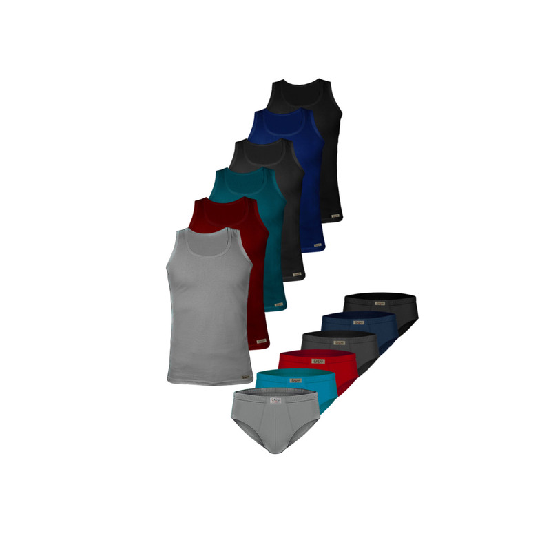 ست شورت و زیرپوش رکابی مردانه تولیدی پاران مدل نخ پنبه خالص صادراتی مجموعه 6 عددی