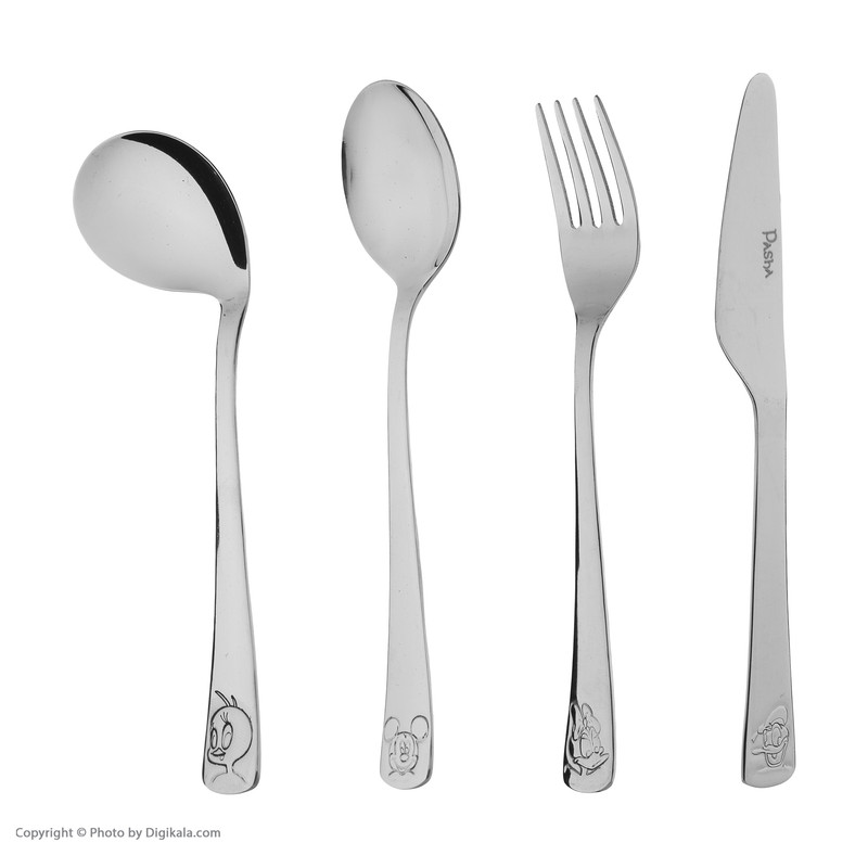 | سایر توضیحات | - دارای یک قاشق غذاخوری به طول دسته: 11 سانتیمتر و وزن 20 گرم - دارای یک چنگال غذاخوری به طول دسته: 11 سانتیمتر و وزن 25 گرم - دارای یک کارد به طول دسته: 9 سانتیمتر و وزن 25 گرم - دارای یک قاشق مخصوص کودک (قاشق کج) به طول دسته: 11 سانتیمتر و وزن 25 گرم |