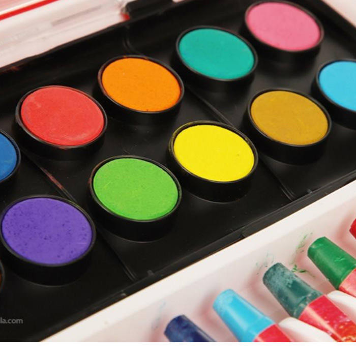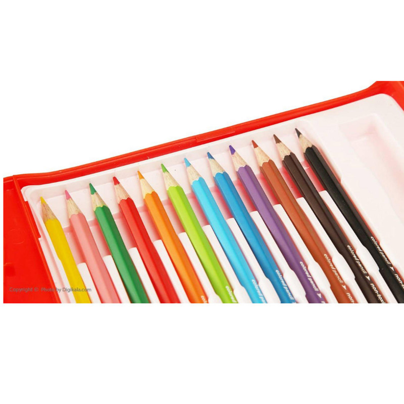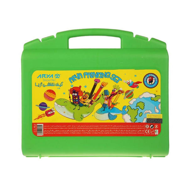 | اقلام همراه | - 12 عدد مداد رنگی - 12 عدد پاستل - 12 عددابرنگ - 6 عدد ماژیک - یک عدد مداد مشکی - یک عدد مداد قرمز - دو عدد مداد تراش - یک عدد پاک کن - یک عدد قلم مو گواش - یک عدد چسب ماتیکی |