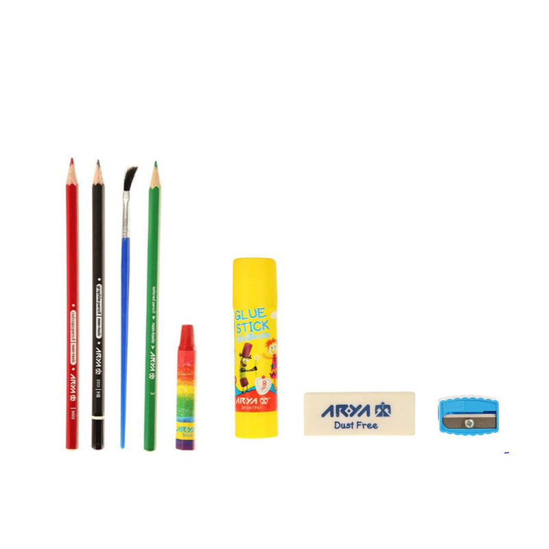 | محتویات بسته | مداد , پاک کن , تراش , ماژیک , کیف , چسب |