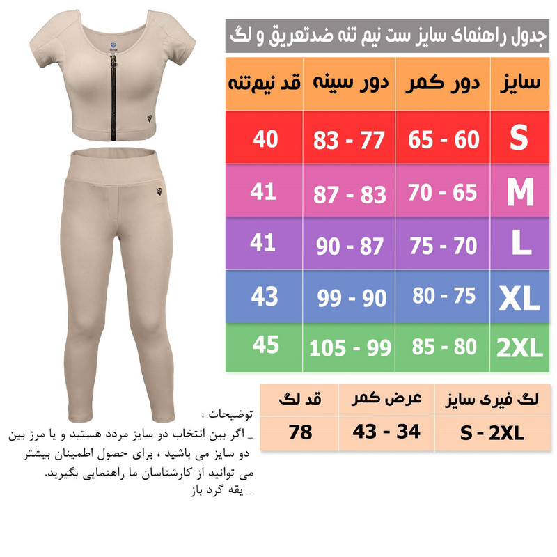 | نوع گرمکن و ست ورزشی زنانه | نیم تنه و لگینگ |
