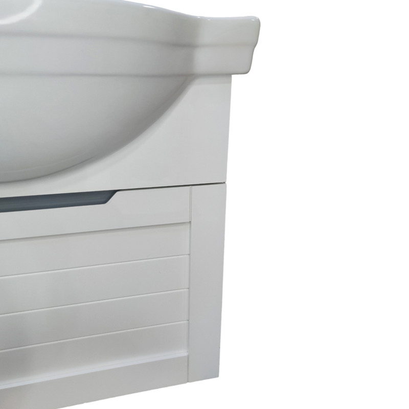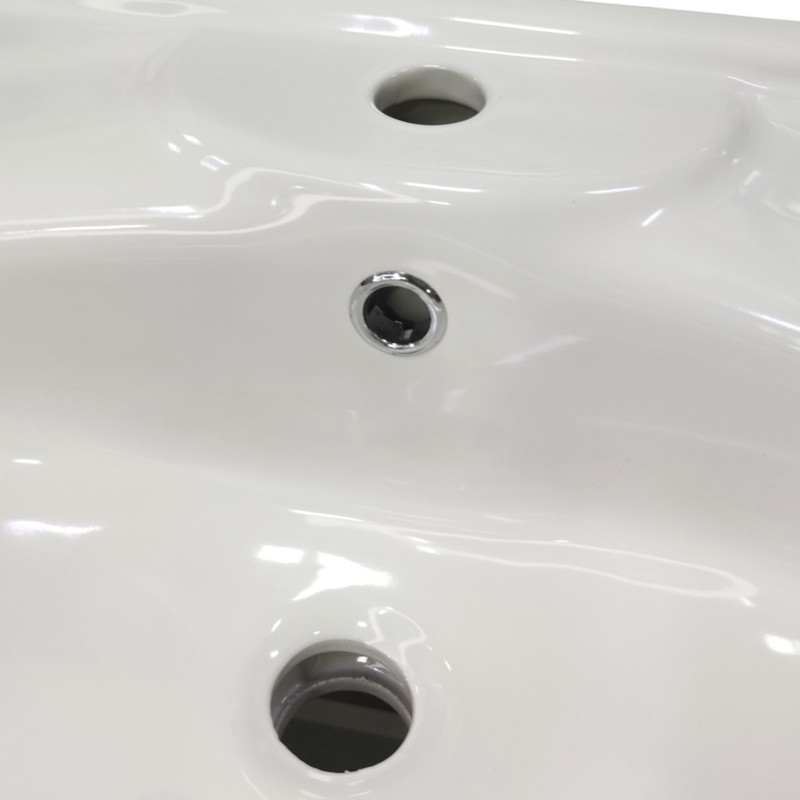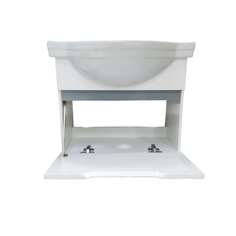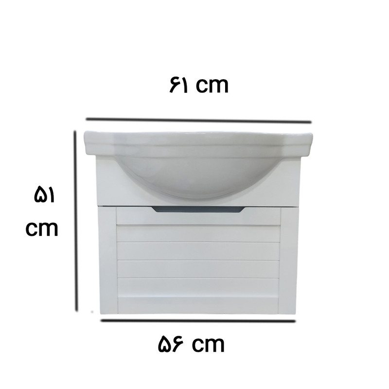 این روشویی با اندازه متناسب و در عین حال کاربردی مناسب هر نوع سرویس بهداشتی میباشد. اندازه آن 61x43 میباشد. کاسه این روشویی ساخت شرکت چینی رز میباشد که بالاترین کیفیت در لعاب را دارد و از لحاظ شفافیت و عدم لک پذیری و رسوب پذیری عالی میباشد. کابین این روشویی ساخت شرکت البرز میباشد که از جنس pvc درجه یک، کاملا ضد آب و ضد بخار میباشد و در هر نوع حمام و سرویس بهداشتی قابل استفاده میباشد. همچنین رنگ آن از نوع خودرویی میباشد که به هیچ عنوان تغییر رنگ و یا کنده نمیشود. لولا و یراق آلات استفاده شده در این کابین نیز از جنس استیل و کاملا ضدآب میباشد.