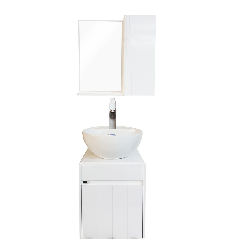فول ست روشویی مدل آلیبرت در ابعاد 35*35 به همراه کابینت PVC ضد آب مناسب استفاده در محیط های مرطوب مانند حمام و دستشویی میباشد. ابعاد کوچک این روشویی باعث شده برای استفاده در فضا های کوچک مناسب باشد. سنگ این کالا ساخت شرکت سینا چینی و دارای لعاب با کیفیت است. ابعاد آینه باکس 50*50 دارای 2 طبقه و محل آویز حوله می باشد. لولا های استفاده شده در آینه باکس و کابینت آرام بند هستند.