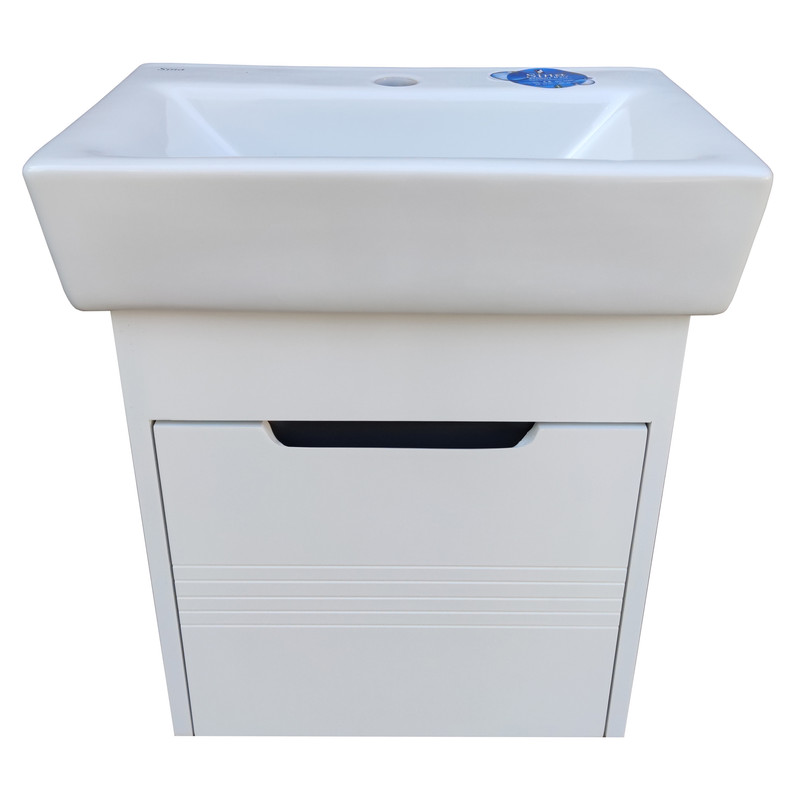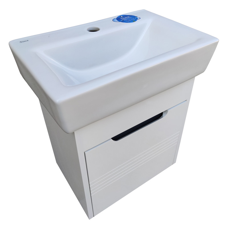 قسمت کابینت آن از جنس pvc بوده است و قسمت روشویی آن از جنس سنگ درجه یک چینی می باشد. با توجه به زیبایی و جنس مرغوب آن در طراحی دکوراسیونهای داخلی ساختمانهای مدرن از این نوع روشوییها خیلی بیشتر از سایر مدلهای قدیمی تر استفاده میشود. این نوع از روشوییها در دسته کالاهای لوکس ساختمانی قرار میگیرند. مشخصههای بارز این محصولات ضدآب بودن و تنوع رنگی بسیار بالای آن هاست. روشوییهای کابینتی دارای یک فضای کابینتی می باشد که برای قرار دادن لوازم بهداشتی از آنها استفاده میشود.