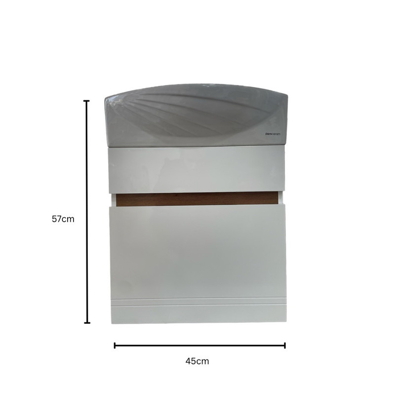 روشویی کابینتی مدل رمینی مناسب برای سرویس های بهداشتی و حمام هایی می باشد که از فظای کمی برخوردار هستند. محل قرار گیری شیر روشویی در قسمت بقلی سنگ می باشد که در تصاویر قابل مشاهده است. سنگ این محصول از برند پرشیا سرام می باشد. کابینت این محصول از جنس پی وی سی (پلاستیک فشرده) می باشد که از ویژگی های آن می توان به ضدآب بودن آن اشاره کرد. ضخامت ورق پی وی سی به کار رفته در این محصول 16 میلمتر است. لولایی به کار رفته در این محصول از نوع آرام بند می باشد.