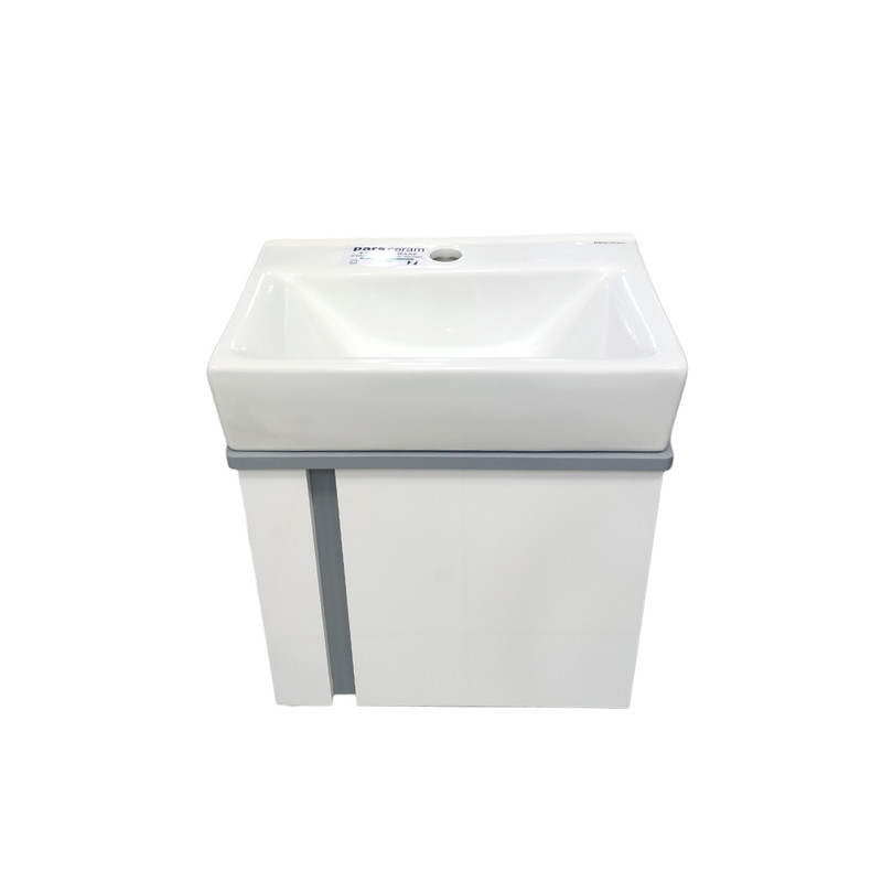 این روشویی با اندازه متوسط و در عین حال کاربردی مناسب هر نوع سرویس بهداشتی میباشد. اندازه آن 46x31 میباشد. کاسه این روشویی ساخت شرکت پارس سرام میباشد که بالاترین کیفیت در لعاب را دارد و از لحاظ شفافیت و عدم لک پذیری و رسوب پذیری عالی میباشد. کابین این روشویی ساخت شرکت البرز میباشد که از جنس pvc درجه یک، کاملا ضد آب و ضد بخار میباشد و در هر نوع حمام و سرویس بهداشتی قابل استفاده میباشد. همچنین رنگ آن از نوع خودرویی میباشد که به هیچ عنوان تغییر رنگ و یا کنده نمیشود. لولا و یراق آلات استفاده شده در این محصول نیز استیل و کاملا ضدآب میباشد.