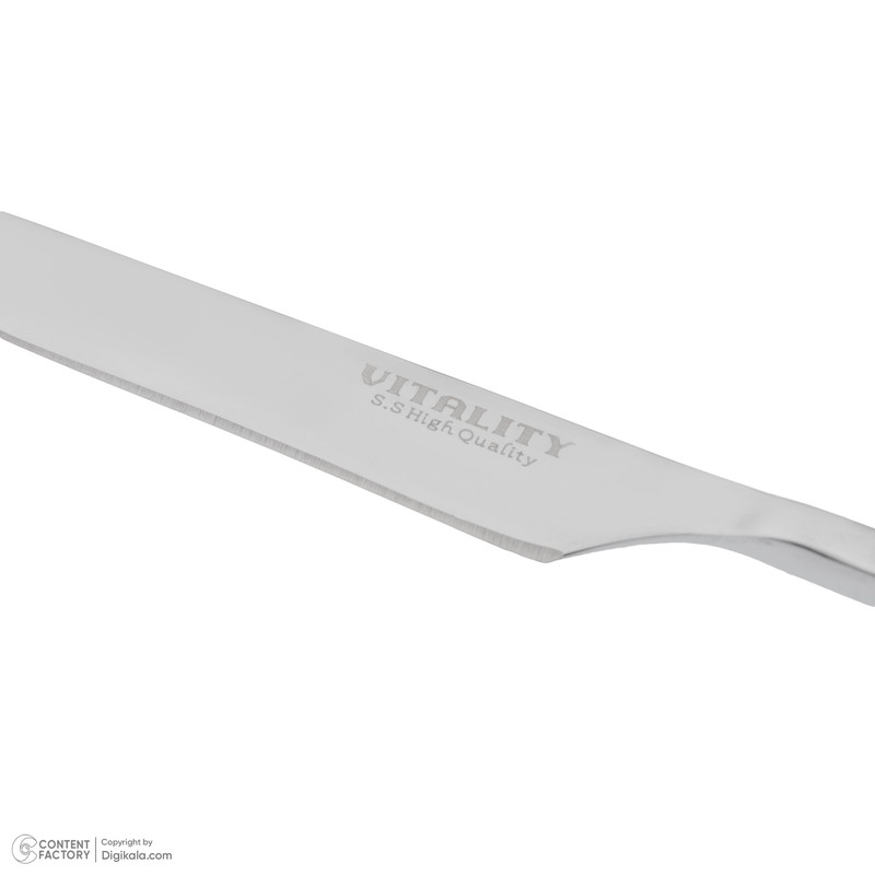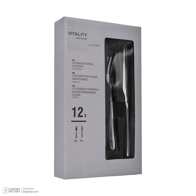 محصولات ویتالیتی با طراحی ساده و مینیمال علاوه بر زیبایی، سادگی در شستشو با دست و ماشین ظرفشویی را نیز برای شما به همراه دارد. کارد و چنگال میوه خوری دونا یک دست (هرکدام6عدد) با رنگ استیل براق در بسته بندی بسیارشیک برای افرادی که نیاز محدودی دارند عرضه میشود. در تولید این محصول ازتکنولوژی روز آلمان با بهترین مواد اولیه روز دنیا استفاده شده است.