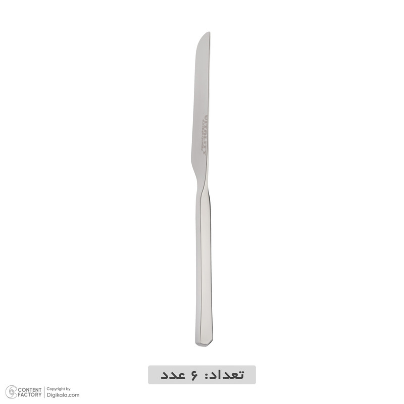 | سایر توضیحات | 6 عدد چنگال میوه خوری به ابعاد 14x2x0.3 سانتی متر و وزن 15 گرم - 6 عدد کارد میوه خوری به ابعاد 18x1x1 سانتی متر و وزن 45 گرم - استیل18/10ضد زنگ با ضخامت 3 میلیمتر |