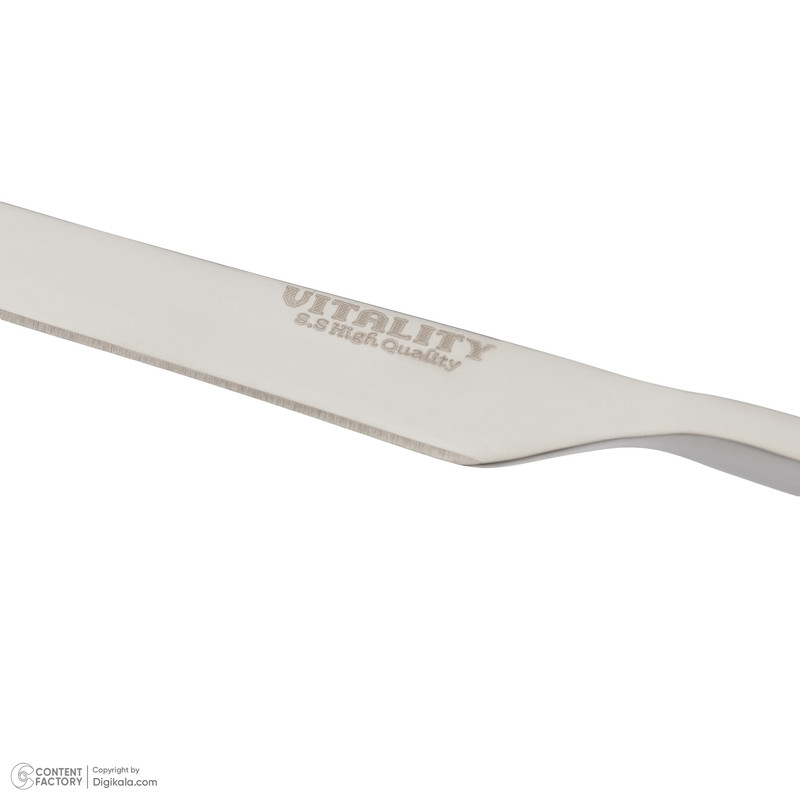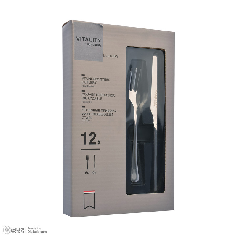 محصولات ویتالیتی با طراحی ساده و مینیمال علاوه بر زیبایی، سادگی در شستشو با دست و ماشین ظرفشویی را نیز برای شما به همراه دارد. کارد و چنگال میوه خوری رویال یک دست (هرکدام6عدد) با رنگ استیل براق در بسته بندی بسیارشیک برای افرادی که نیاز محدودی دارند عرضه میشود. در تولید این محصول ازتکنولوژی روز آلمان با بهترین مواد اولیه روز دنیا استفاده شده است.