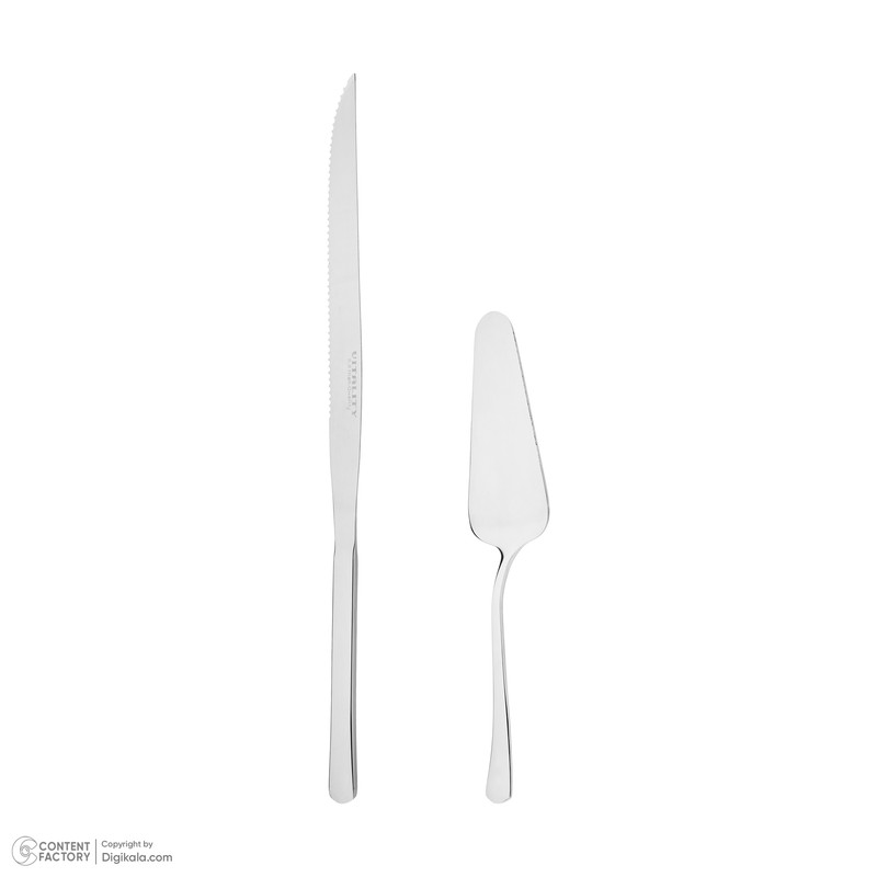 سایر توضیحات 1 عدد کفگیر سرو کیک به ابعاد 21.5x4x0.35 سانتی متر و وزن 75 گرم - 1 عدد کارد سرو کیک به ابعاد 33x2x0.35 سانتی متر و وزن 105 گرم