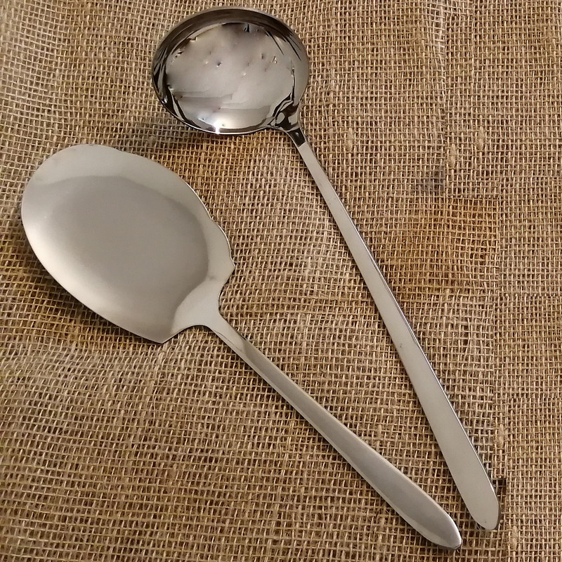 ست کفگیر و ملاقه 2 پارچه مدل دونا ساخته شده از استیل 1810 ضد زنگ ،دارای طراحی زیبا وکاربردی است.طراحی مدل دونا به گونه ایست که قابلیت ست شدن با تمامی سرویس های قاشق و چنگال استیل را دارد.سایز کفگیر 28 سانتی متر و سایز ملاقه 28 سانتی متر و در قالب و اندازه استاندارد تولید شده است .