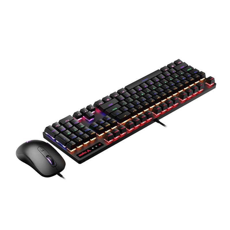 ست گیمینگ Rapoo V150S ترکیبی جذاب از کیبورد مکانیکی و ماوس اپتیکال حرفهای است که برای گیمرها طراحی شده. کیبورد این مجموعه با 104 کلید مکانیکی و نورپردازی رنگی پسزمینه، هم سرعت و دقت فوقالعادهای در تایپ و بازی ارائه میدهد و هم جلوهای زیبا به میز شما میبخشد. عمر بالای کلیدها و طراحی ضدسایش آن باعث میشود در طولانیمدت کیفیت اولیه خود را حفظ کنند. ماوس همراه این ست، از سنسور اپتیکال دقیق با قابلیت تنظیم DPI تا 6400 پشتیبانی میکند و طراحی ارگونومیک آن استفاده طولانیمدت را راحت و بدون خستگی میسازد. ترکیب این دو محصول، تجربهای روان، سریع و هیجانانگیز در بازی را برای شما فراهم میآورد.