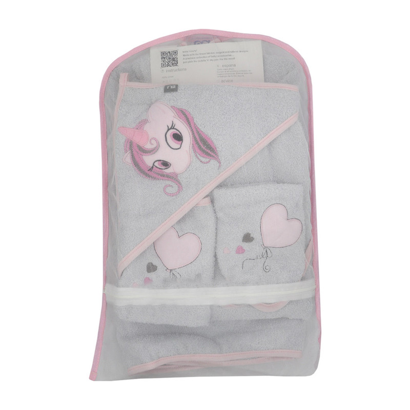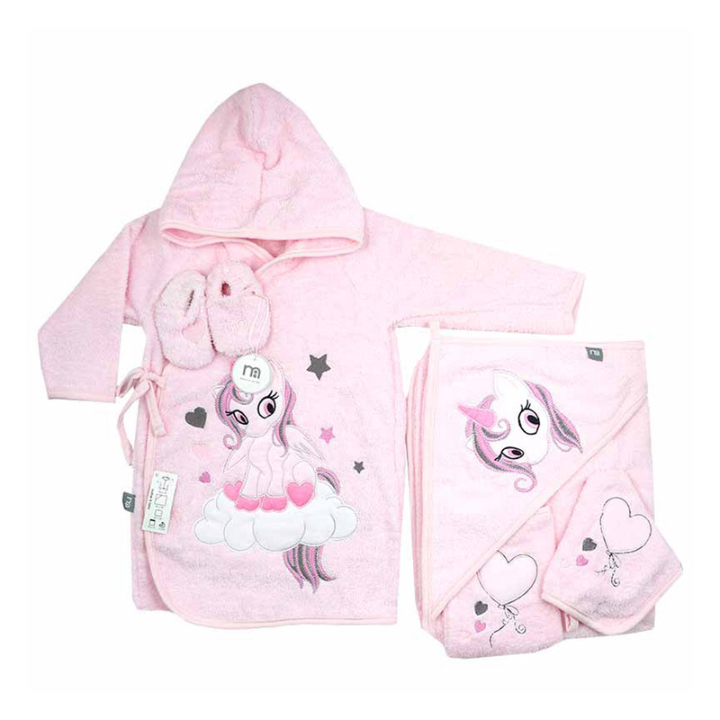 | سایر توضیحات | شامل: حوله تن پوش ،حوله دورپیچ کلاه دار،حوله دست و صورت،یک جفت پاپوش،لیف مناسب برای استفاده تا 2 سالگی ، جنس 100% کتان ، ضد حساسیت ، دارای جنس لطیف و نرم |