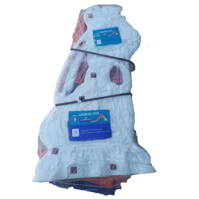 ابعاد کلی محصول در حالت نصب شده( تقریبی): طول 245 عرض 65 ارتفاع 130 سانتی متر و طول سر( تقریبی): 220 سانتی متر-- ارتفاع بلندترین پله تا زمین: 85 سانتی متر . کالا مطابق عکس وکیوم شده می باشد . محصول با بسته بندی شادکیدز تویز ارایه می گردد.