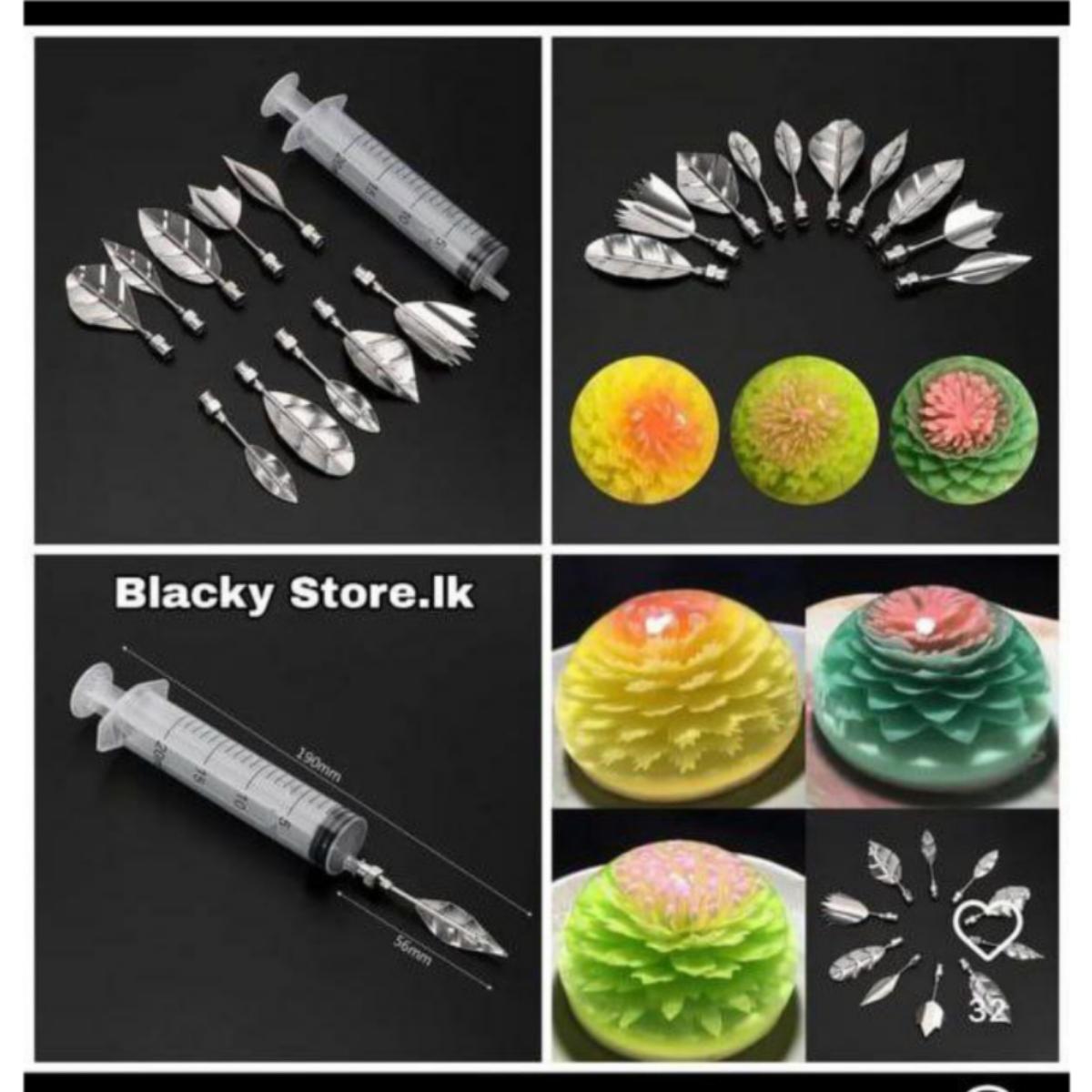 هنر رو وارد دسرهات کن! با ست تزریقی ژله، گلهای سهبعدی بساز و مهمونیهات رو خاصتر کن. شامل سرنگ و سریهای فلزی با طرح گل و برگ مناسب برای قنادهای هنرمند، عاشقان دسر و خلاقهای خوراکی!