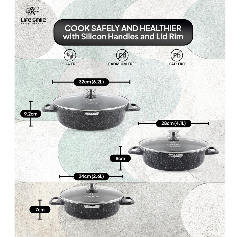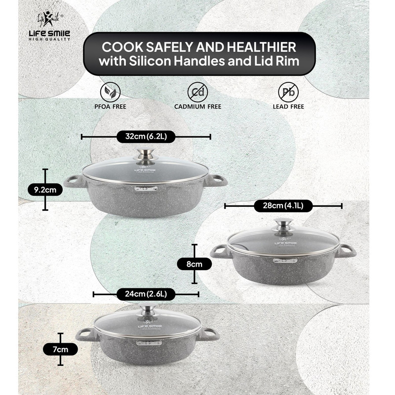 | سایر توضیحات | شامل: گلدان های کم عمق 20 سانتی متر (1.6 لیتر)، 24 سانتی متر (2.6 لیتر)، 28 سانتی متر (4.1 لیتر). قابلمه های ظروف پخت و پز با کیفیت ، ساختار بدنه آلومینیومی دایکاست ممتاز ، پوشش گرانیت نچسب بادوام ، دسته های جانبی قالبی ، بدون PFOA و قابل استفاده در مایکروویو ، کف القایی برای حفظ حرارت برتر ،درب شیشه ای مقاوم 5 میلی متری با دریچه بخار و لبه استیل خالص 18/10،محصولات Life Smile راه حل مناسبی برای پخت غذاهای سالم و رژیمی بدون چربی هستند و تمیز کردن آنها بسیار آسان است. محصولات Life Smile از مواد اولیه مرغوب توسط تیم طراح متخصص در سبک های متنوع و دلپذیر ساخته شده است. تابه ظروف آشپزی با روکش گرانیت قبل از استفاده از قابلمه برای اولین بار در آب گرم و صابون بشویید، کاملا خشک کنید و کمی با روغن/کره مزه دار کنید. حرارت کم/متوسط برای به دست آوردن بهترین نتایج پخت کافی است. هرگز تابه را بیش از حد گرم نکنید (حداکثر دمای ۲۰۰-۲۴۰ درجه سانتیگراد برای هر محدوده خاص روی بسته بندی نشان داده شده است). آلومینیوم ریخته گری رسانای بسیار خوبی برای گرما است و گرمای بیش از حد مداوم می تواند به پوشش آسیب برساند. وقتی تابه خالی است آن را گرم نکنید. از قابلمه فقط برای پخت و پز استفاده شود. از تابه کم عمق با پوشش گرانیتی برای نگهداری (ذخیره کردن) غذا برای مدت طولانی تری استفاده نکنید زیرا برخی از مواد غذایی تهاجمی می توانند به پوشش آسیب برسانند. فقط از ظروف چوبی و نایلونی استفاده کنید و غذای داخل قابلمه را نبرید. پس از استفاده، تابه را برای مدتی خنک نگه دارید، آن را در آب گرم و صابون تمیز کرده و کاملا خشک کنید. برخی از شوینده های تهاجمی می توانند به محصول آسیب برسانند. شستشو با دست پیشنهاد می شود. تغییر رنگ جزئی پوشش داخل قابلمه هیچ تاثیر منفی بر کیفیت محصول و یا تاثیر آن در حین استفاده ندارد. دسته های باکلیت و دستگیره های قابلمه و دستگیره های درب آن از دمای ۱۸۰ تا ۲۴۰ درجه سانتیگراد ضد فر هستند (طبق القایی روی بسته بندی محصول). محصولات Life Smile برای انواع اجاق گاز (اجاق گاز، برقی، سرامیکی/هالوژن، اجاق گاز) مناسب هستند. |