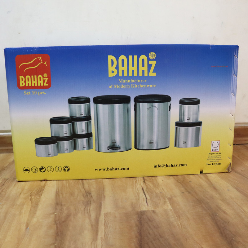 | سایر توضیحات | سرویس 10 پارچه بهاز کالا شامل: 1:سطل برنج بدون پیمانه 1 عدد 2:سطل زباله 14 لیتری 1 عدد 3:قوطی حبوبات 1 عدد 4:قوطی نبات 6 عدد طول:79 سانتی متر عرض:34 سانتی متر ارتفاع:44.5 سانتی متر وزن:10 کیلو گرم منظور از رنگ قهوه ای طرح چوب ونگه میباشد. |