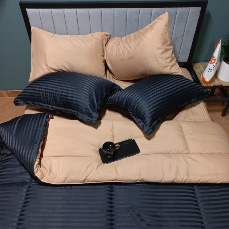 سرویس روتختی یک نفره 4 تکه چیداری دوخته شده به صورت دورو با دستگاه های تمام صنعتی ترکیبی از پارچه هتلی ساتن نخ و ساده میکروفایبر شامل دو عدد روبالشی که یک عدد آنها از پارچه هتلی و دو عدد آنها از پارچه میکرو ساده تهیه شده است و دارای یک عدد ملحفه کش دوزی شده ، و یک عدد لحاف می باشد.