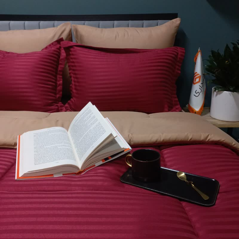 سرویس روتختی یک نفره 4 تکه چیداری دوخته شده به صورت دورو با دستگاه های تمام صنعتی ترکیبی از پارچه هتلی ساتن نخ و ساده میکروفایبر شامل دو عدد روبالشی که یک عدد آنها از پارچه هتلی و دو عدد آنها از پارچه میکرو ساده تهیه شده است و دارای یک عدد ملحفه کش دوزی شده ، و یک عدد لحاف می باشد.