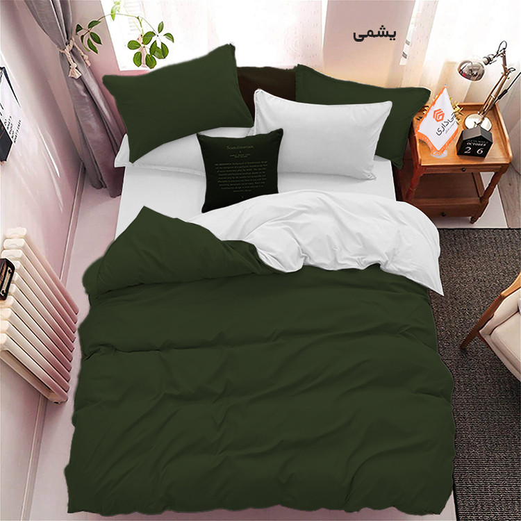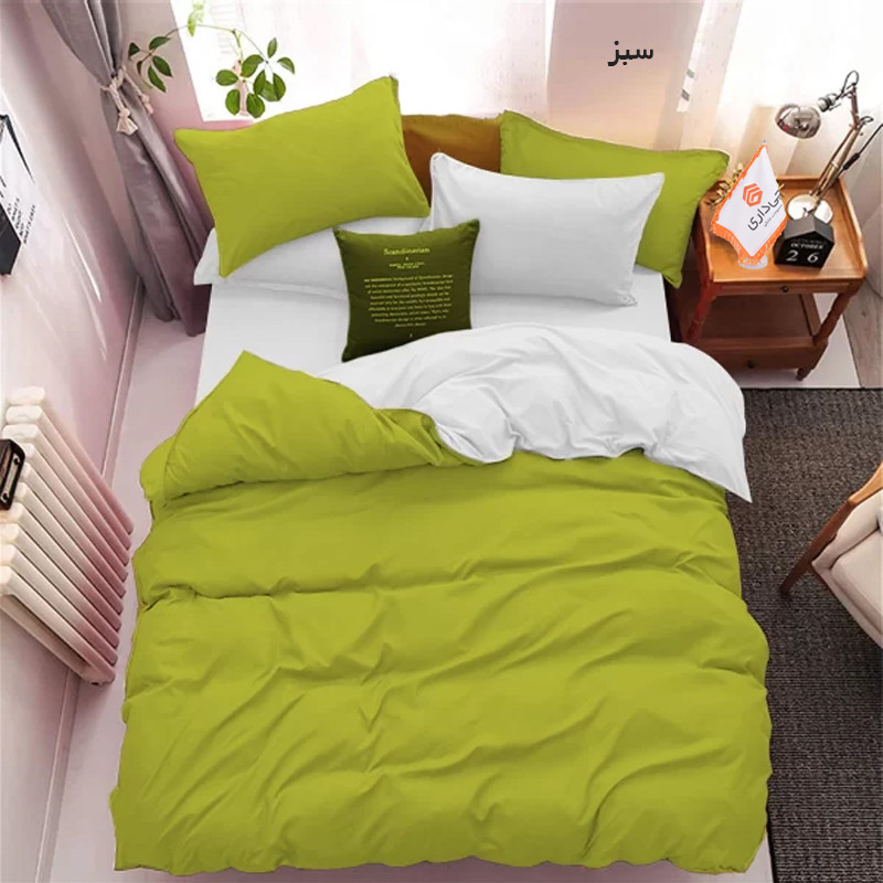 این سرویس کاوری یک نفره دارای کاورلحاف میباشد یعنی لحاف ندارد، به این صورت که شما میبایست در منزل لحاف داشته باشید و با کاور لحاف آنرا بپوشانید. رنگ روتشکی و روبالش های سفید می باشد و کاور لحاف به صورت دورنگ دوخته شده که یک طرف آن سفید و طرف دیگه اون رنگ انتخابی شما مطابق تصویر می باشد .
