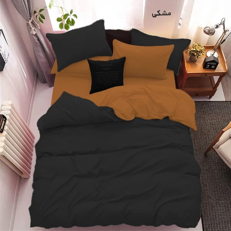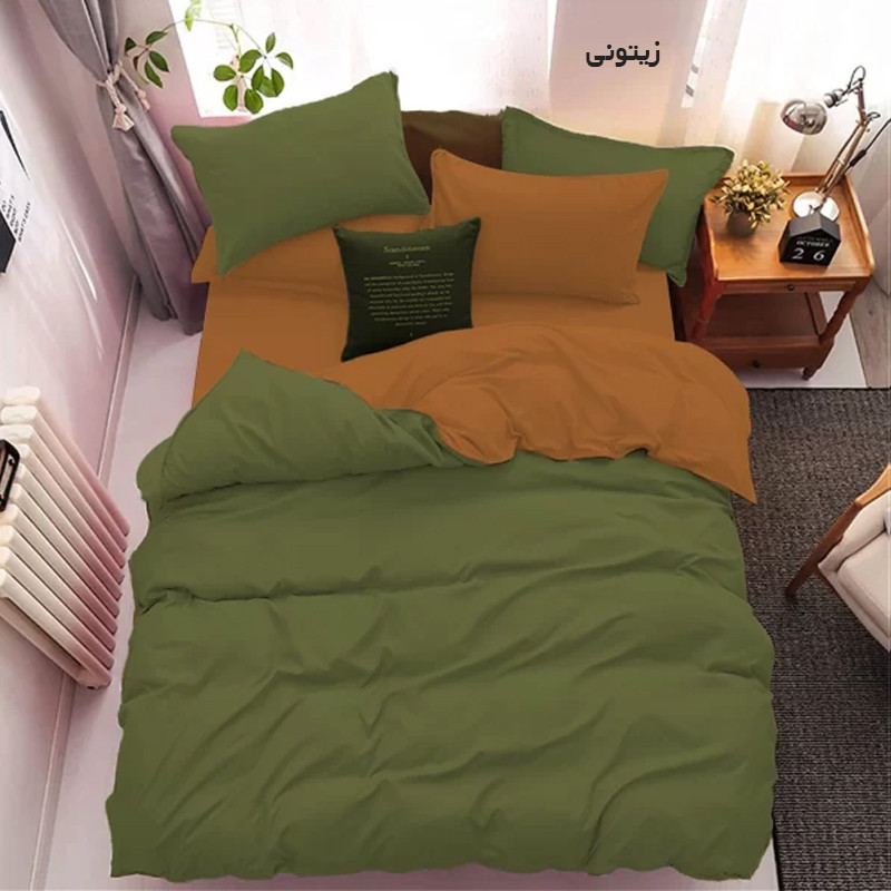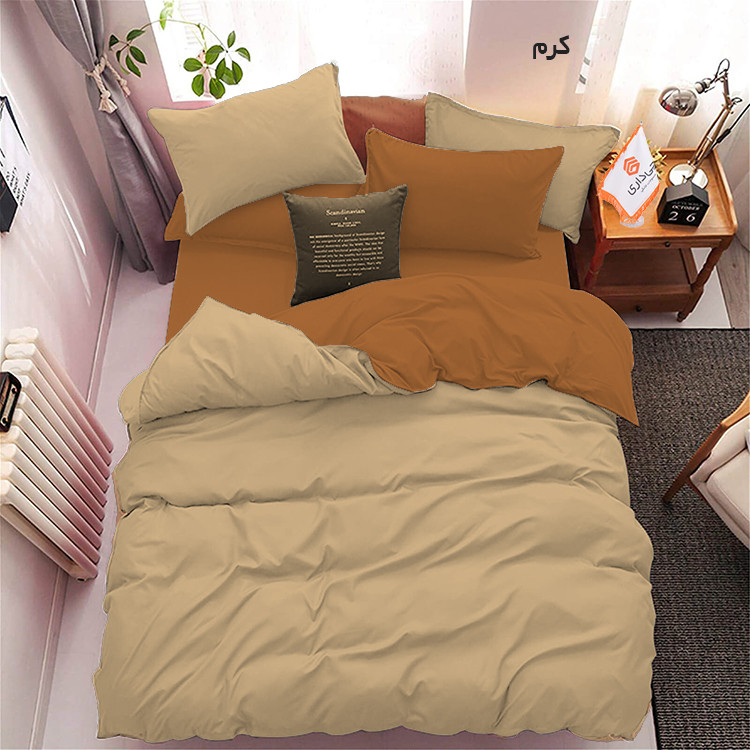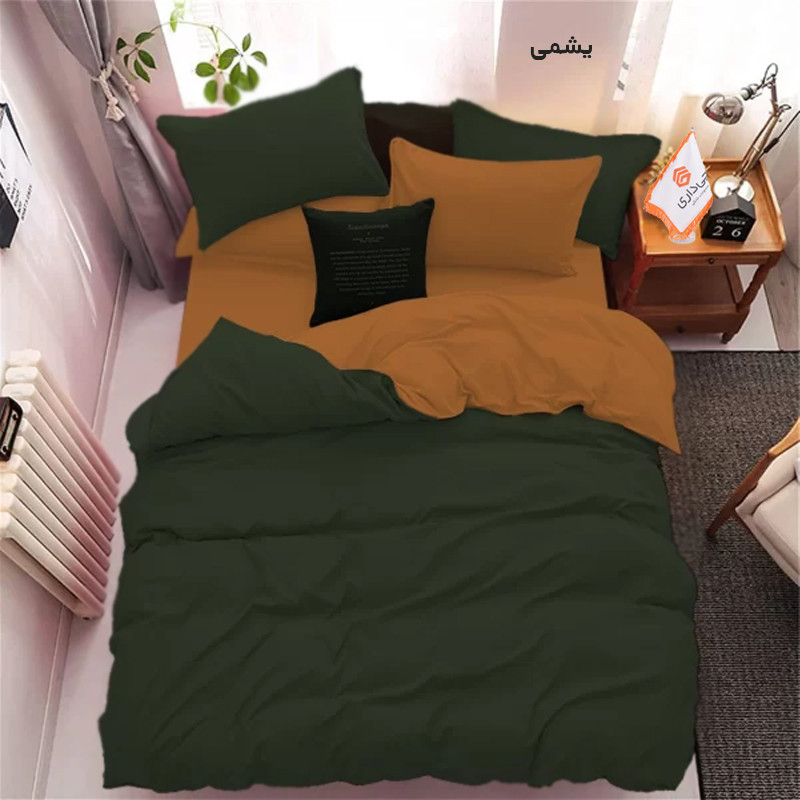این سرویس کاوری یک نفره دارای کاورلحاف میباشد یعنی لحاف ندارد، به این صورت که شما میبایست در منزل لحاف داشته باشید و با کاور لحاف آنرا بپوشانید. رنگ روتشکی و روبالش های قهوه ای روشنمی باشد و کاور لحاف به صورت دورنگ دوخته شده که یک طرف آن قهوه ای روشن و طرف دیگه اون رنگ انتخابی شما مطابق تصویر می باشد .