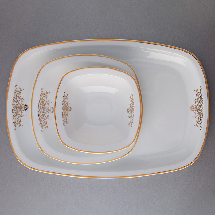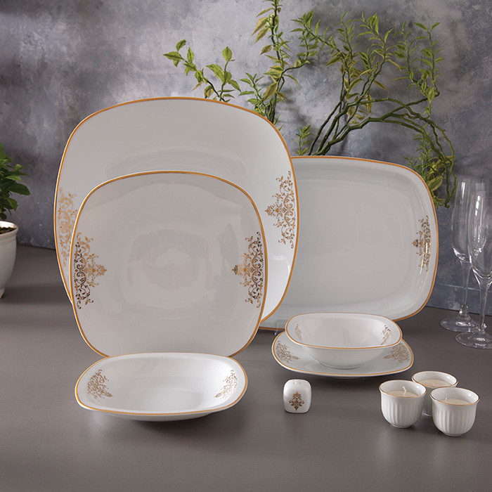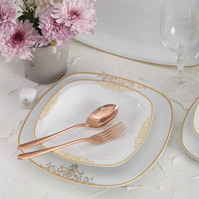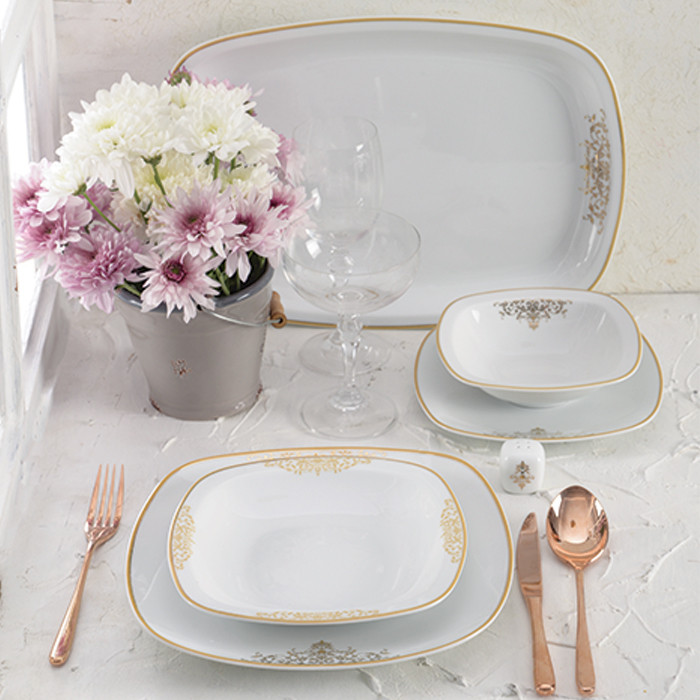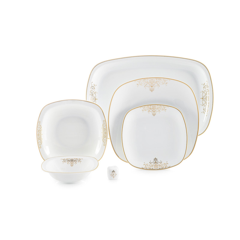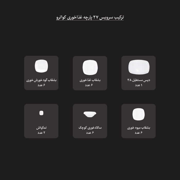 | اقلام سرویس | دیس , بشقاب غذاخوری , بشقاب خورشخوری , پیشدستی , نمکپاش و فلفلپاش , پیاله |