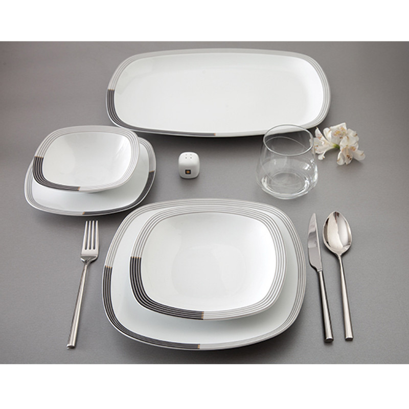 این سرویس غذاخوری 27 پارچه از متریال چینی با کیفیت بالا ساخته شده است که برای مقاومت در برابر ضربه، خراش و همچنین ماندگاری طولانی مدتی که دارد شناخته شده است. طرح وگاس اوریت مدل کواترو دارای طراحی شیک و زیباست که به سفره شما جلوه و شکوه خاصی میبخشد.