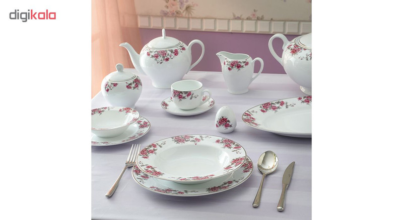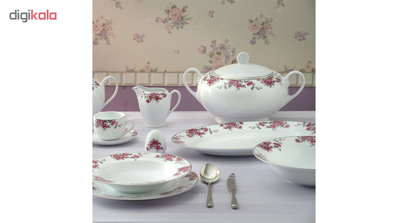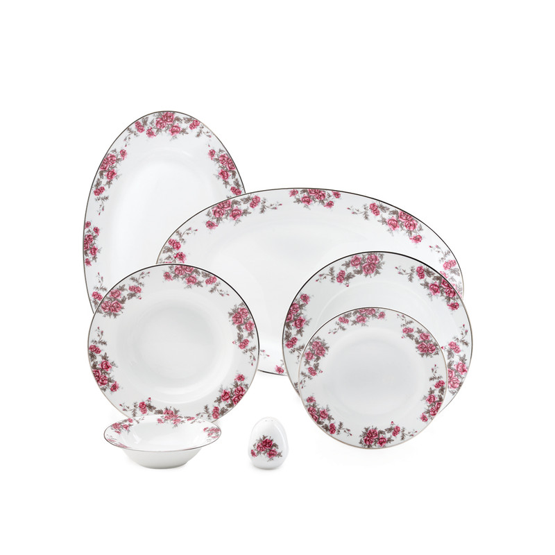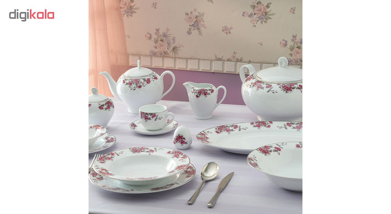 | اقلام سرویس | دیس , بشقاب غذاخوری , بشقاب خورشخوری , پیشدستی , نمکپاش و فلفلپاش , پیاله |