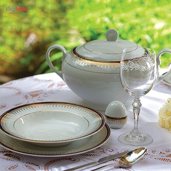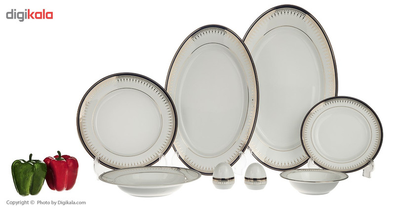 | اقلام سرویس | پیشدستی , بشقاب غذاخوری , دیس , بشقاب خورشخوری , سالادخوری , نمکپاش و فلفلپاش |