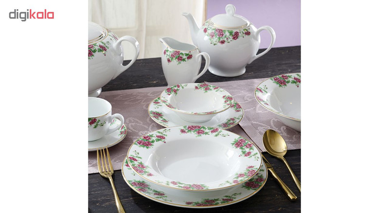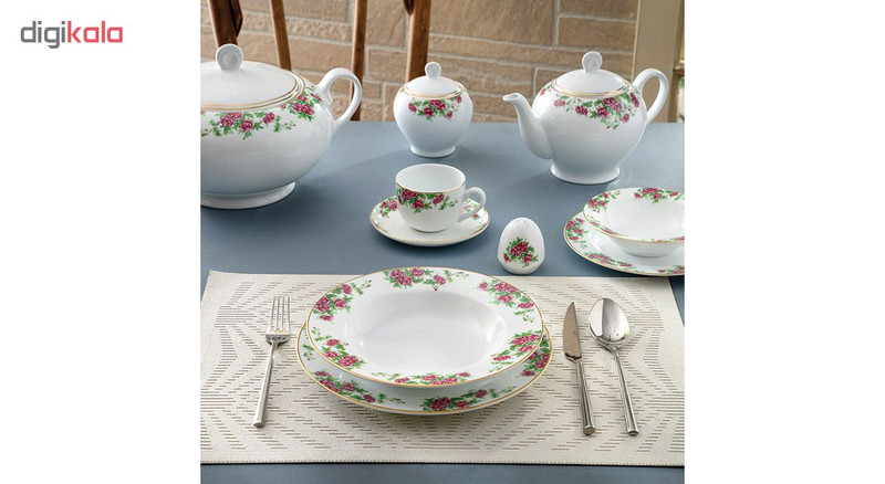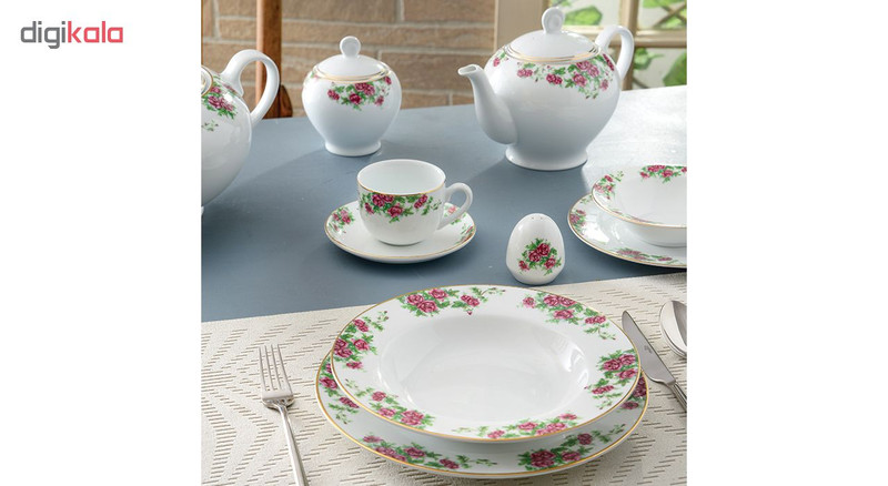 | اقلام سرویس | دیس , بشقاب غذاخوری , بشقاب خورشخوری , پیشدستی , نمکپاش و فلفلپاش , پیاله |