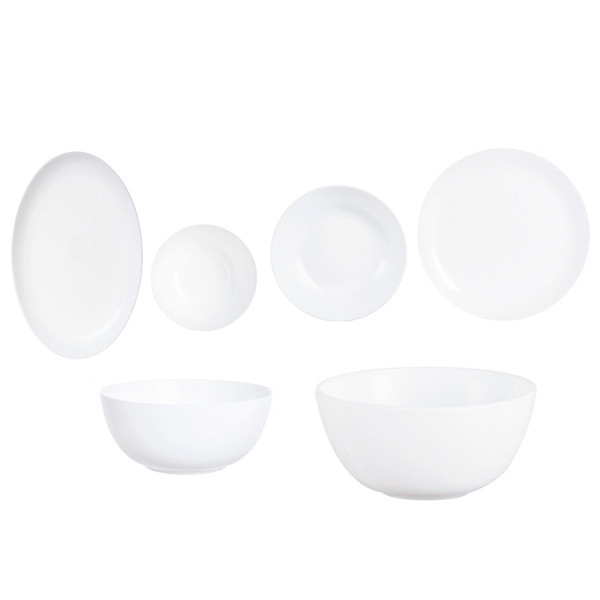 سرویس غذا خوری 26 پارچه لومینارک مدل دیوالی ظروف غذاخوری شش نفره شامل شش عدد غذاخوری، شش عدد خورشخوری، شش عدد پیشدستی و شش عدد پیاله است. همچنین شامل 1 عدد کاسه سالاد و 1 عدد دیس است. ابعاد ظروف این ست به شرح زیر است: قطر غذاخوری 25 سانتیمتر، قطر خورشخوری 20 سانتیمتر و قطر پیشدستی 19 سانتیمتر. این ست از جنسی قابل استفاده در مایکروویو و قابل شستشو با ماشین ظرفشویی است.