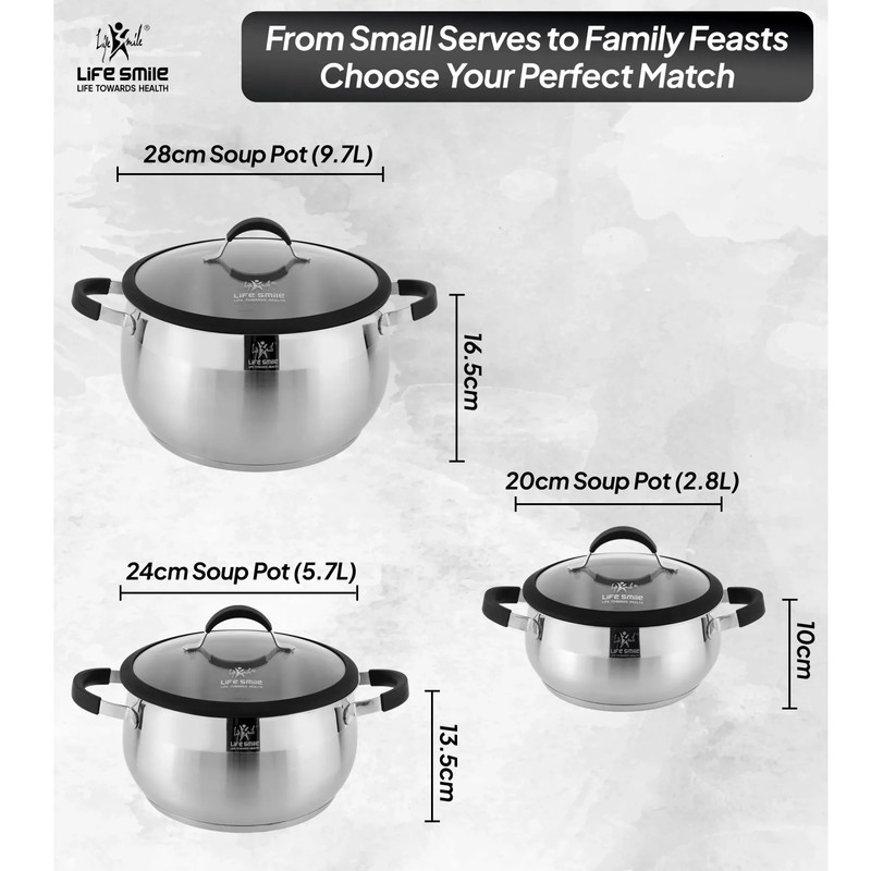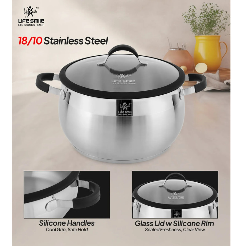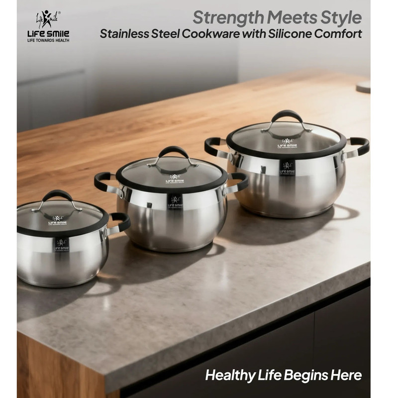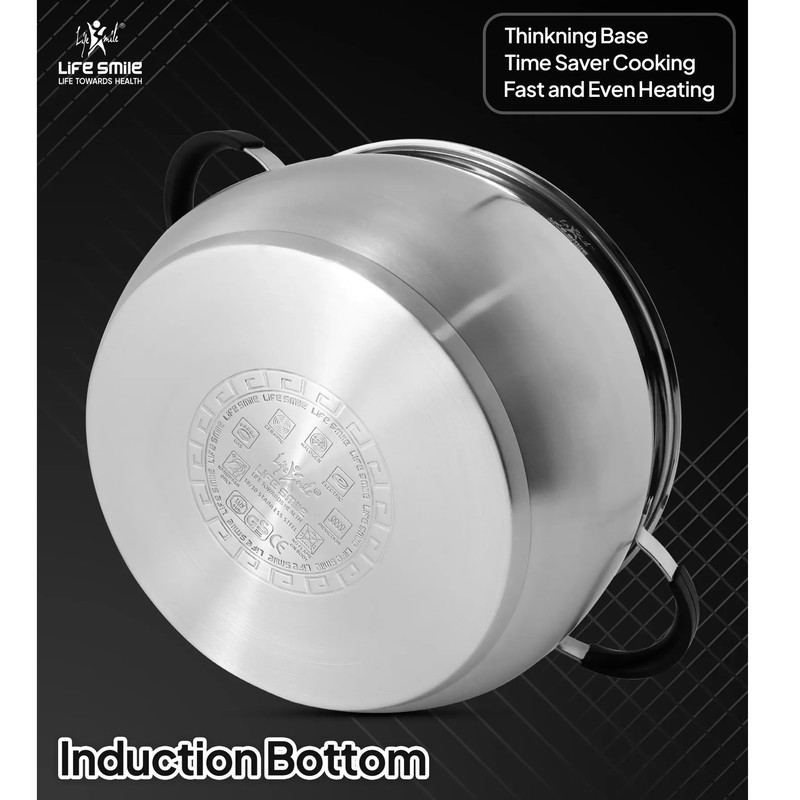 سایر توضیحاتسرویس قابلمه استیل ضد زنگ ممتاز 6 پارچه 18/10 - کف القایی با دسته‌های سیلیکونی و درب شیشه‌ای درب‌های شیشه‌ای با لبه سیلیکونی : طعم‌ها را حفظ کنید و در عین حال به راحتی بر غذاهای خود نظارت داشته باشید.فولاد ضد زنگ مرغوب ۱۸/۱۰ - ضد زنگ، بادوام و مقاوم در برابر خوردگی، که عملکرد طولانی مدت را تضمین می‌کند. پایه القایی : توزیع سریع و یکنواخت گرما روی اجاق گازهای گازی، برقی، شیشه‌ای و القایی. آشپزی سالم : بدون چربی، بدون سرب و بدون PFOA برای وعده‌های غذایی ایمن و مغذی. تمیز کردن آسان سطح غیر متخلخل برای تمیز کردن سریع و بدون دردسر. ساختار بدنه ضخیم و مقاوم :این مجموعه ظروف پخت و پز که از استیل ضد زنگ مرغوب 18/10 ساخته شده است، دارای بدنه ای ضخیم و مقاوم در برابر ضربه است که برای عملکرد طولانی مدت طراحی شده است. ساختار عالی آن توزیع یکنواخت گرما را تضمین می کند، نقاط داغ را از بین می برد و به شما امکان می دهد با دقت آشپزی کنید. چه در حال جوشاندن، تفت دادن یا کباب کردن باشید، ظروف پخت و پز Life Smile نتایج ثابت و با کیفیت رستوران را ارائه می دهد. پوشش نهایی درخشان : این سرویس با درخششی براق و آینه‌ای به هر آشپزخانه‌ای جلوه‌ای خاص می‌بخشد. این سطح زیبا نه تنها زیبا به نظر می‌رسد، بلکه در برابر زنگ‌زدگی، لکه و تغییر رنگ نیز بسیار مقاوم است و تضمین می‌کند که ظروف شما به زیبایی روز اول خود باقی بمانند. با مراقبت و نگهداری آسان، این سرویس برای سال‌های آینده در بهترین شرایط ساخته شده است. دسته‌های ارگونومیک با طراحی راحت : ظروف پخت و پز Life Smile که برای ایمنی و سهولت استفاده طراحی شده‌اند، دارای دسته‌های ارگونومیکی هستند که خنک می‌مانند و راحتی و امنیت را فراهم می‌کنند. دیگر نگران سوختگی یا جابجایی نامناسب نباشید - این دسته‌ها، آشپزی را حتی روی اجاق‌های با حرارت بالا، لذت‌بخش‌تر و بدون استرس می‌کنند. تمیز کردن آسان، فقط با دست شسته شود: تمیز کردن ظروف بعد از یک وعده غذایی خوشمزه هرگز آسان‌تر از این نبوده است. سرویس قابلمه لایف اسمایل برای نگهداری آسان طراحی شده است. برای حفظ درخشندگی و عملکرد ظروف، کافیست آنها را با دست بشویید. سطح صاف و غیر متخلخل این ظروف در برابر تجمع مواد غذایی مقاوم است و تمیز کردن آنها را بسیار آسان می‌کند. سازگار با انواع اجاق گاز: چه با اجاق گاز، برقی، شیشه‌ای یا القایی آشپزی کنید، سرویس قابلمه Life Smile برای استفاده با هر منبع حرارتی طراحی شده است. کف همه‌کاره آن توزیع بهینه گرما را در تمام سطوح پخت و پز تضمین می‌کند و آن را برای هر نوع چیدمان آشپزخانه‌ای ایده‌آل می‌سازد.