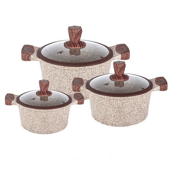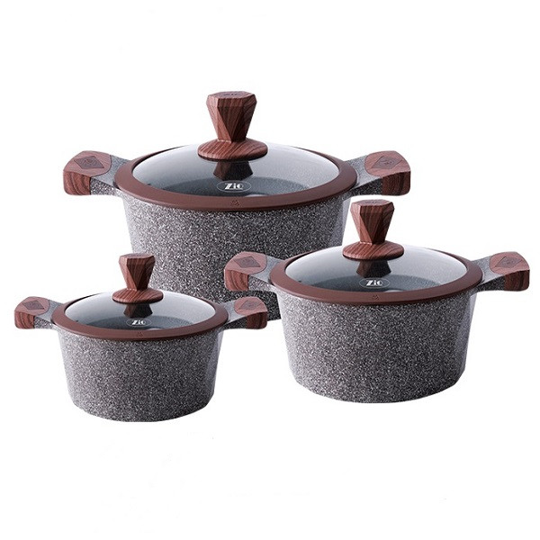 سرویس قابلمه زیو دارای دسته یکپارچه متصل به بدنه گرانیت درجه 1 سنگی کاملا نچسب و ضد خش قابلمه زیو قابل استفاده در انواع ماشین ظرفشویی کوره های تولیدی که در آنها سرویس ها رنگ میشه تا 400% درجه در برابر حرارت مستقیم مقاومت می کنند. پوشش رنگی این قابلمه ها در رده بهداشتی ترین قرار دارد و تحت هیچ شرایطی رنگ پس نمی دهند. سرویس قابلمه گرانیتی زیو هیج تاثیری بر رنگ و طعم غذا ندارد و از این بابت شما رو بیمه خواهد کرد. جنس گرانیتی بخصوص سنگی شستشوی بسیار راحتی دارد. قابلمه گرانیتی زیو هیج تاثیری بر رنگ و طعم غذا ندارد و از این بابت شما رو بیمه خواهد کرد. جنس گرانیتی بخصوص سنگی شستشوی بسیار راحتی دارد. شیشه های مورد استفاده در ظروف ترک از نوع پیرکس هستند و دارای ضخامتی به شعاع 2٫5 میل را دارند. پوشش دو طرفه شیشه نیز از یک استیل با کیفیت تولید شده که به خوبی روی قابلمه سوار می شود. کله بالایی نیز تماما چوبی هستند و از طراحی فوق العاده شیکی برخوردار است. جنس کفه این سرویس پخت وپز دارای کفه ای تمام استیل است که ساختاری ضد زنگ دارد و بسیار با کیفیت بالا سرویس قابلمه ترکی زیو با ادغام بودن جنس دستگیره به بدنه در برابر گرمای مستقیم مقاومت بالاتری دارد. ساختار تکنولوژی نانو گرانیت در این سرویس با فرمول گیاهی تعریف شده پخت و پز رو به سالم ترین شکل ممکن ارائه می نماید. ساختار گرانیتی این قابلمه باعث شده سرعت انتقال حرارت آن بسیار سریع و پخت در سریع ترین زمان انجام شود.