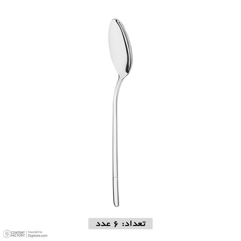 | سایر توضیحات | ۶ عدد قاشق غذاخوری به ابعاد 23x4x0.3 سانتی متر و وزن ۶۰ گرم - ۶ عدد چنگال غذاخوری به ابعاد 23x3.5x0.3 سانتی متر و وزن ۵۰ گرم - ۶ عدد کارد میوهخوری به ابعاد 18x1.5x0.3 سانتی متر و وزن ۴۰ گرم - ۶ عدد چنگال میوهخوری به ابعاد 14.5x2x0.3 سانتی متر و وزن ۱۵ گرم - ۶ عدد قاشق شربتخوری به ابعاد 20.5x3x0.3 سانتی متر و وزن ۲۵ گرم - ۶ عدد قاشق چایخوری به ابعاد 14.5x3x0.3 سانتی متر و وزن ۲۰ گرم - ۱ عدد ملاقه سوپ به ابعاد 22x8x3 سانتی متر و وزن ۱۰۵ گرم - ۱ عدد کفگیر برنج به ابعاد 29x7.8x0.3 سانتی متر و وزن ۱۱۵ گرم - ۱ عدد استند به ابعاد 18.5x17.5x30 سانتی متر و وزن ۵۱۰ گرم - |