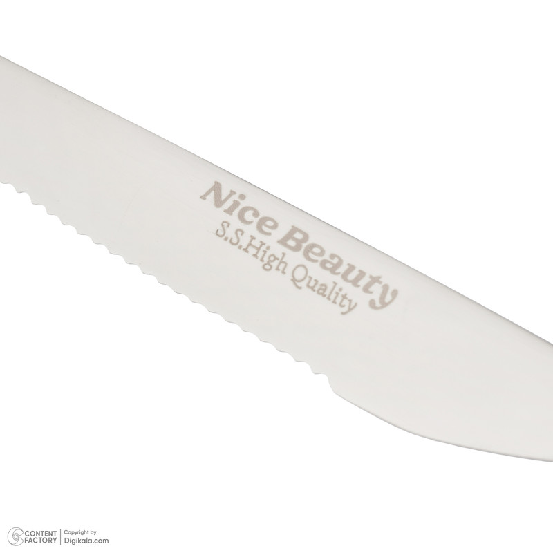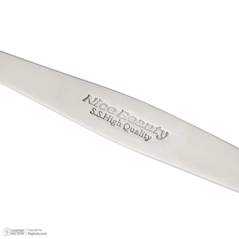 سرویس قاشق چنگال 119پارچه نایس بیوتی ( Nice Beauty ) تمام نیازهای شما را برطرف می کند.وجه تمایز این سرویس که به جرات میتوان گفت یکی از بهترین ست های کاربردی،اصولی وبا کیفیت موجود در بازار نسبت به برند های دیگر میباشد ،ضخامت 3٫5 میلیمتر واقعی باطراحی مدل های روز اروپایی است که پولیش عالی و با کیفیت این محصول، سهم چشم گیری در انتخاب این محصول به مشتریان خاص پسندش میدهد، لازم به ذکر است،این محصول با ظاهری زیبا و چشم نواز با رنگ براق خود زیبایی و شکوه خاصی به پذیرایی شما می دهد و تجربه پذیرایی ماندگاری را برای شما به ارمغان می آورد . این سرویس 18نفره از نوع بهترین استیل کروم نیکل10/18 جهان ساخته شده وکاملا ضد زنگ وضد سیاه شدگی و قابل شستشو در ماشین ظرفشویی می باشد. کاردهای میوه خوری سه بعدی این ست ،فوق العاده تیز میباشد که براحتی پوست میوه ها را جدا میکند و با طرح دسته 3 بعدی بسیار خوش دست میباشد. کارد استیک این ست دارای دندانه های برنده فوق العاده تیزی بوده و اقلام دیگر آن نیز چنین میباشد و شما را بی نیاز از هر گونه خرید اضافه می نماید.