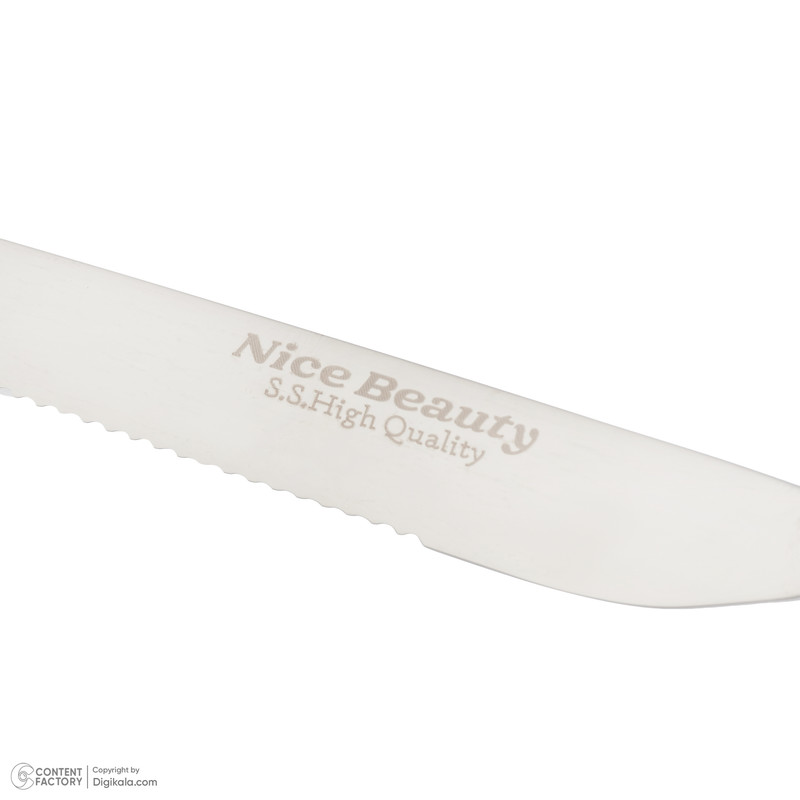 سرویس قاشق چنگال 119پارچه نایس بیوتی ( Nice Beauty ) * با جعبه چوبی 3کشو * تمام نیازهای شما را برطرف می کند.وجه تمایز این سرویس که به جرات میتوان گفت یکی از بهترین ست های کاربردی،اصولی وبا کیفیت موجود در بازار نسبت به برند های دیگر میباشد ،ضخامت 3٫5 میلیمتر واقعی باطراحی مدل های روز اروپایی است که پولیش عالی و با کیفیت این محصول، سهم چشم گیری در انتخاب این محصول به مشتریان خاص پسندش میدهد، لازم به ذکر است،این محصول با ظاهری زیبا و چشم نواز با رنگ براق خود زیبایی و شکوه خاصی به پذیرایی شما می دهد و تجربه پذیرایی ماندگاری را برای شما به ارمغان می آورد . این سرویس 18 نفره از نوع بهترین استیل کروم نیکل10/18 جهان ساخته شده وکاملا ضد زنگ وضد سیاه شدگی و قابل شستشو در ماشین ظرفشویی می باشد. کاردهای میوه خوری سه بعدی این ست ،فوق العاده تیز میباشد که براحتی پوست میوه ها را جدا میکند و با طرح دسته 3 بعدی بسیار خوش دست میباشد. کارد استیک این ست دارای دندانه های برنده فوق العاده تیزی بوده و اقلام دیگر آن نیز چنین میباشد و شما را بی نیاز از هر گونه خرید اضافه می نماید.