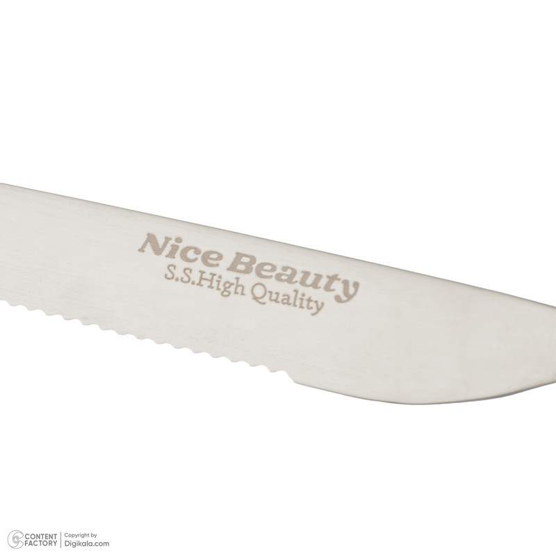 سرویس قاشق چنگال 119پارچه نایس بیوتی ( Nice Beauty ) تمام نیازهای شما را برطرف می کند.وجه تمایز این سرویس که به جرات میتوان گفت یکی از بهترین ست های کاربردی،اصولی وبا کیفیت موجود در بازار نسبت به برند های دیگر میباشد ،ضخامت 3٫5 میلیمتر واقعی باطراحی مدل های روز اروپایی است که پولیش عالی و با کیفیت این محصول، سهم چشم گیری در انتخاب این محصول به مشتریان خاص پسندش میدهد، لازم به ذکر است،این محصول با ظاهری زیبا و چشم نواز با رنگ براق خود زیبایی و شکوه خاصی به پذیرایی شما می دهد و تجربه پذیرایی ماندگاری را برای شما به ارمغان می آورد . این سرویس 18نفره از نوع بهترین استیل کروم نیکل10/18 جهان ساخته شده وکاملا ضد زنگ وضد سیاه شدگی و قابل شستشو در ماشین ظرفشویی می باشد. کاردهای میوه خوری سه بعدی این ست ،فوق العاده تیز میباشد که براحتی پوست میوه ها را جدا میکند و با طرح دسته 3 بعدی بسیار خوش دست میباشد. کارد استیک این ست دارای دندانه های برنده فوق العاده تیزی بوده و اقلام دیگر آن نیز چنین میباشد و شما را بی نیاز از هر گونه خرید اضافه می نماید.