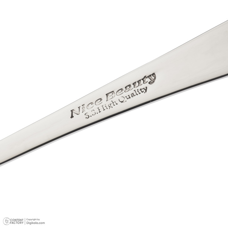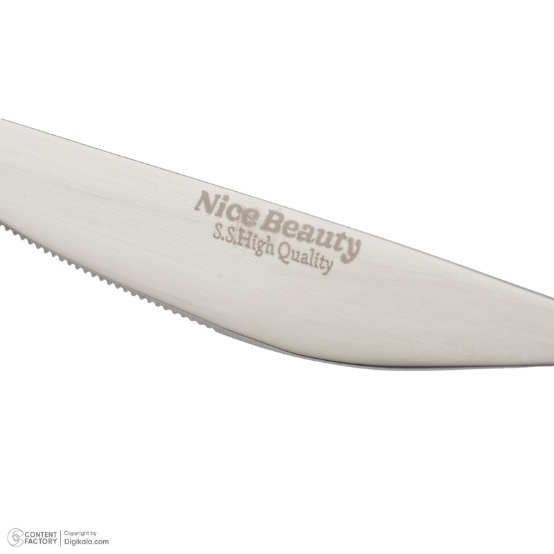 سرویس قاشق چنگال 119 پارچه نایس بیوتی ( Nice Beauty ) تمام نیازهای شما را برطرف می کند.وجه تمایز این سرویس که به جرات میتوان گفت یکی از بهترین ست های کاربردی،اصولی وبا کیفیت موجود در بازار نسبت به برند های دیگر میباشد ،ضخامت ۳٫۵ میلیمتر واقعی باطراحی مدل های روز اروپایی است که پولیش عالی و با کیفیت این محصول، سهم چشم گیری در انتخاب این محصول به مشتریان خاص پسندش میدهد، لازم به ذکر است،این محصول با ظاهری زیبا و چشم نواز با رنگ براق خود زیبایی و شکوه خاصی به پذیرایی شما می دهد و تجربه پذیرایی ماندگاری را برای شما به ارمغان می آورد . این سرویس 18نفره از نوع بهترین استیل کروم نیکل10/18 جهان ساخته شده وکاملا ضد زنگ وضد سیاه شدگی و قابل شستشو در ماشین ظرفشویی می باشد. کاردهای میوه خوری سه بعدی این ست ،فوق العاده تیز میباشد که براحتی پوست میوه ها را جدا میکند و با طرح دسته 3 بعدی بسیار خوش دست میباشد. کارد استیک این ست دارای دندانه های برنده فوق العاده تیزی بوده و اقلام دیگر آن نیز چنین میباشد و شما را بی نیاز از هر گونه خرید اضافه می نماید.