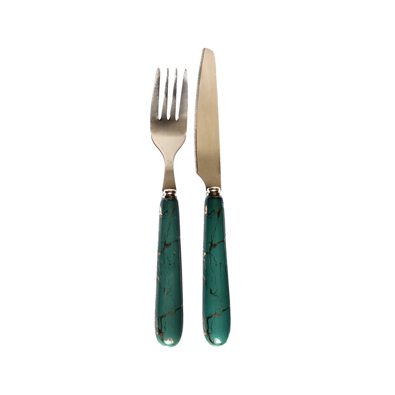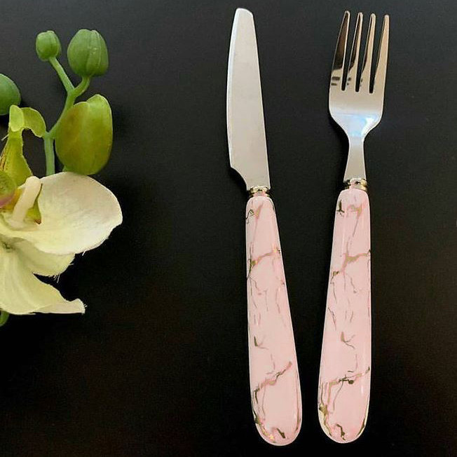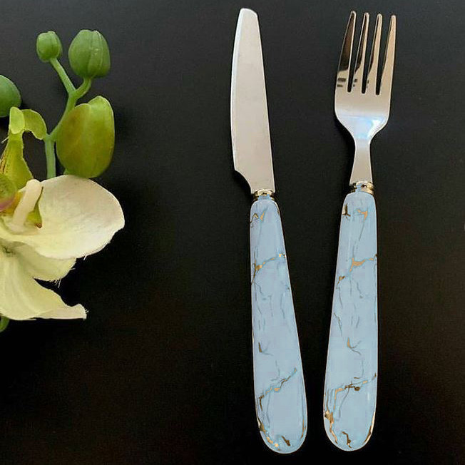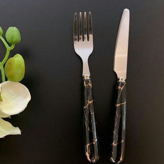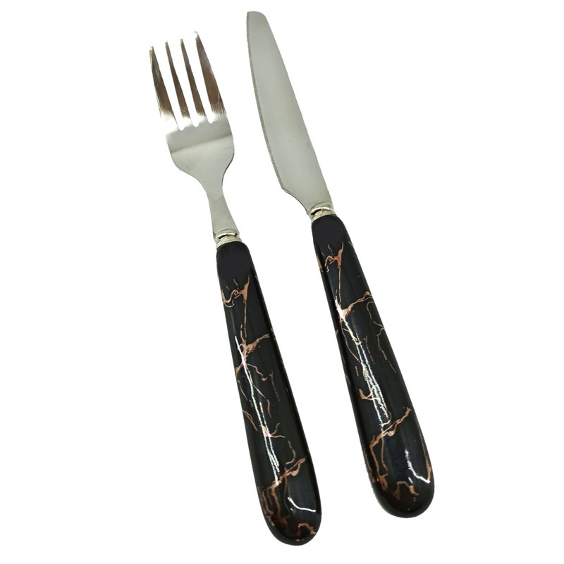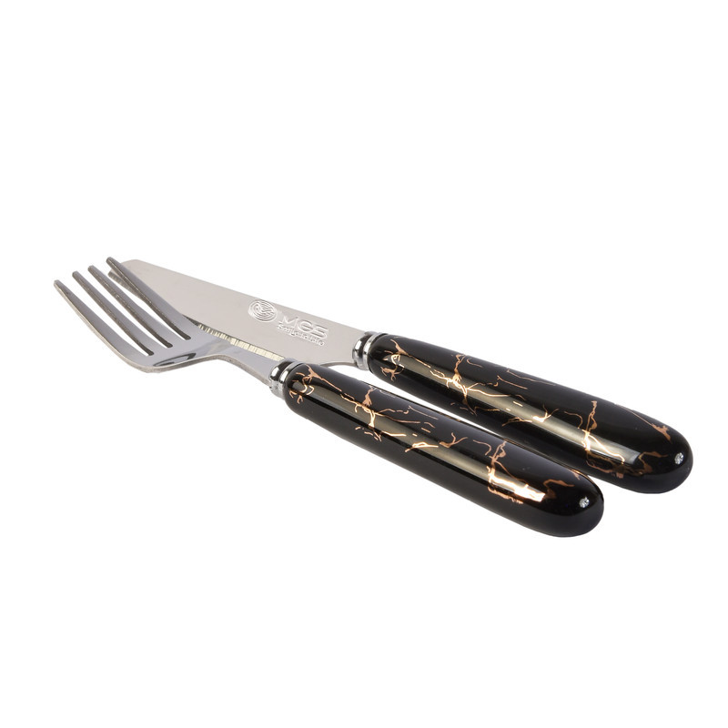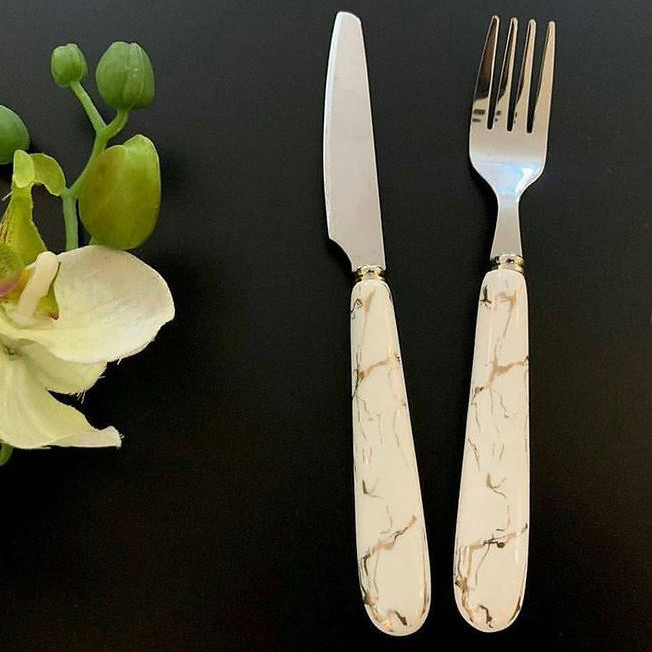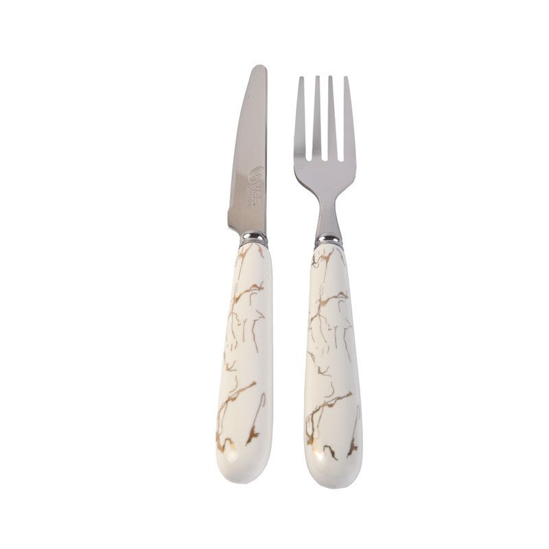 کارد و چنگال میوه خوری ماربل شامل 6 عدد چنگال و 6 عدد کارد میوه خوری می‌باشد.