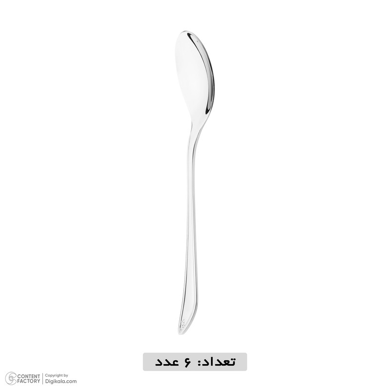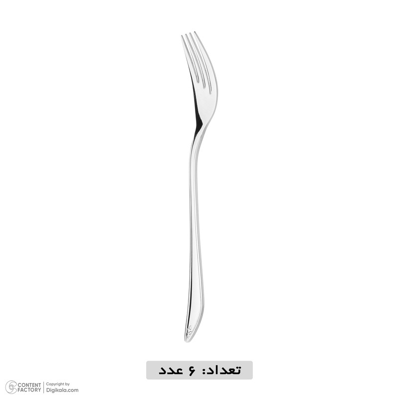 | سایر توضیحات | 6 عدد قاشق غذاخوری به ابعاد 22x3.5x0.35 سانتی متر و وزن 65 گرم - 6 عدد چنگال غذاخوری به ابعاد 21.5x3x0.35 سانتی متر و وزن 50 گرم - استیل 18/10 ضد زنگ - ضخامت 3.5 میلی متر |